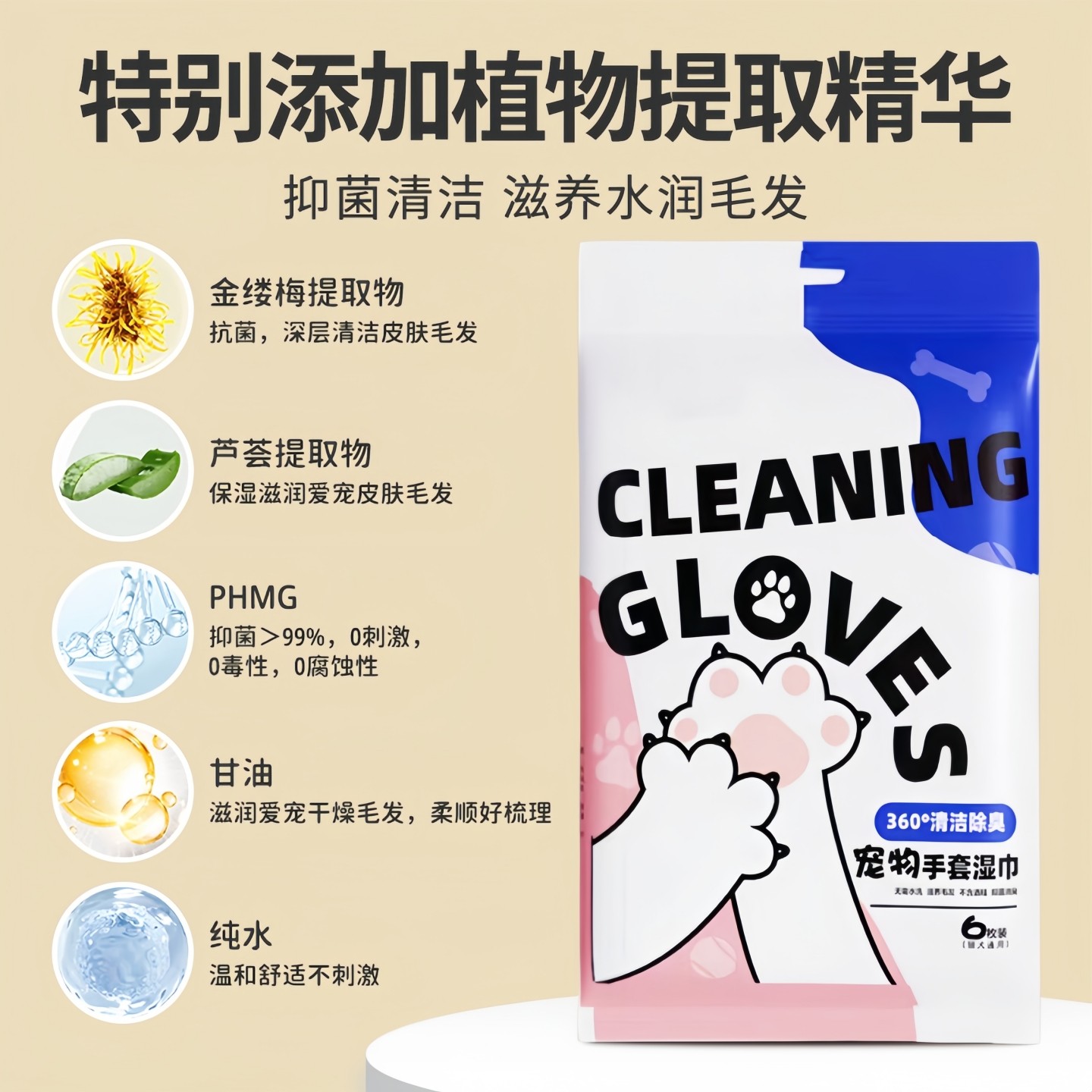 宠物免洗手套猫咪狗狗湿巾专用免洗澡干洗神器清洁用品除臭湿纸巾