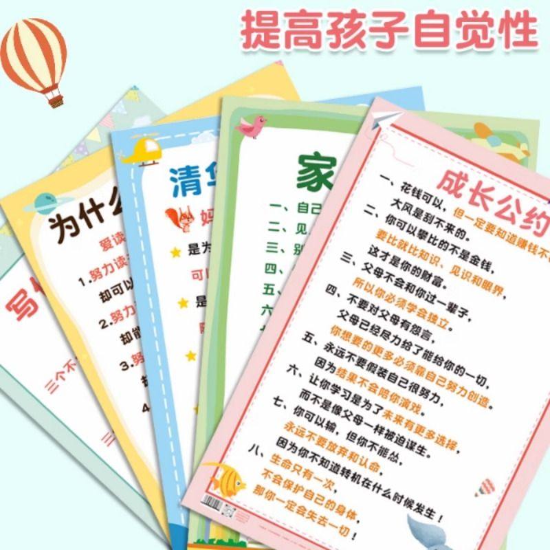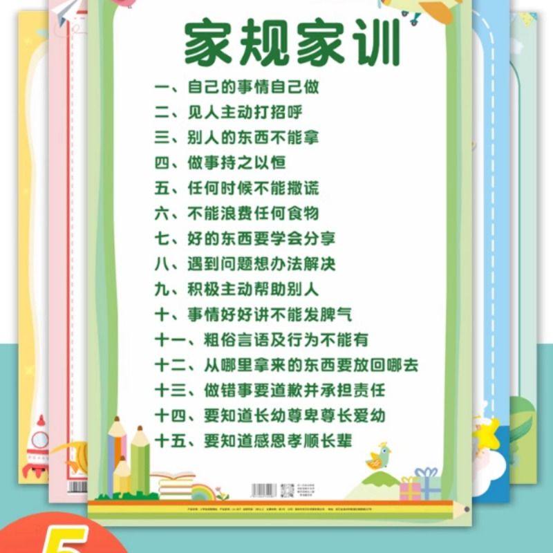 家训家规挂图五件套儿童自律创意孩子励志教育墙贴女男孩挂画