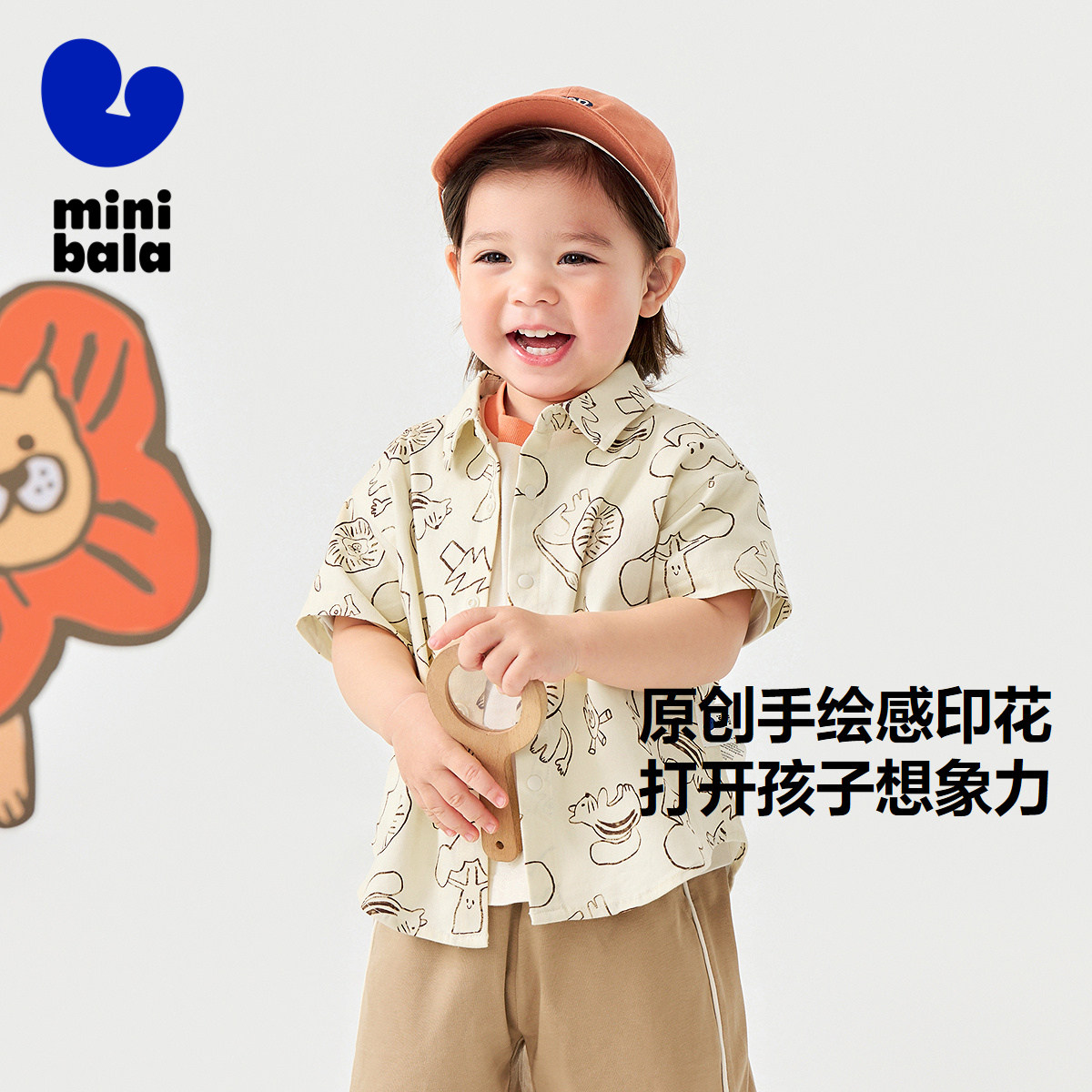 迷你巴拉巴拉男童莱赛尔短袖衬衫夏季新款宝宝亲肤柔弹轻薄上衣