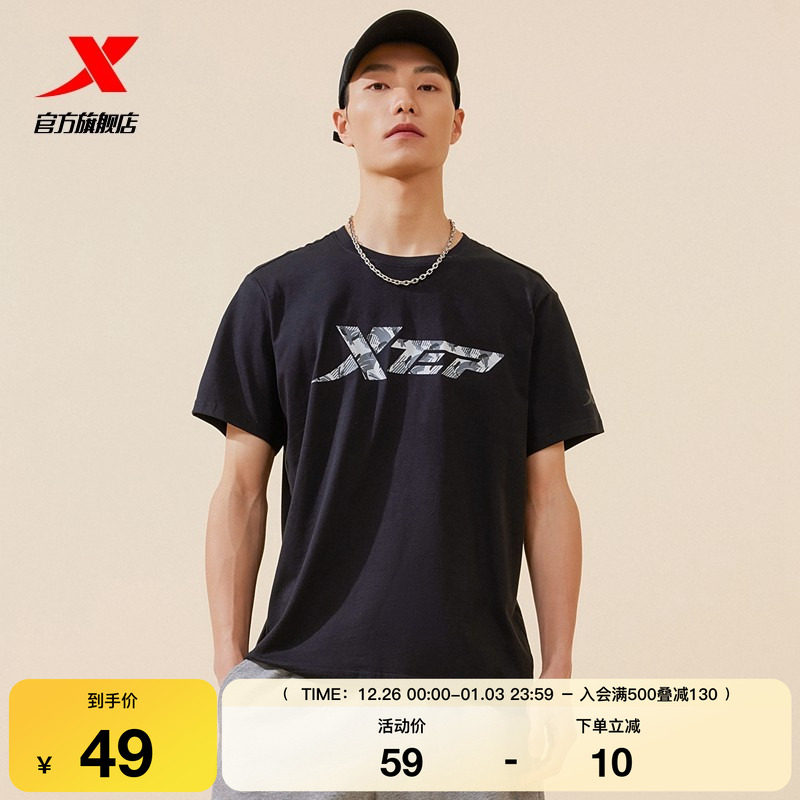 特步男女短袖百搭潮流半袖情侣款官方印花休闲t恤男装短T运动上衣
