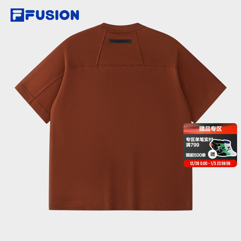 FILA FUSION斐乐潮牌男子针织短袖衫2025冬季新款休闲纯棉宽松T恤