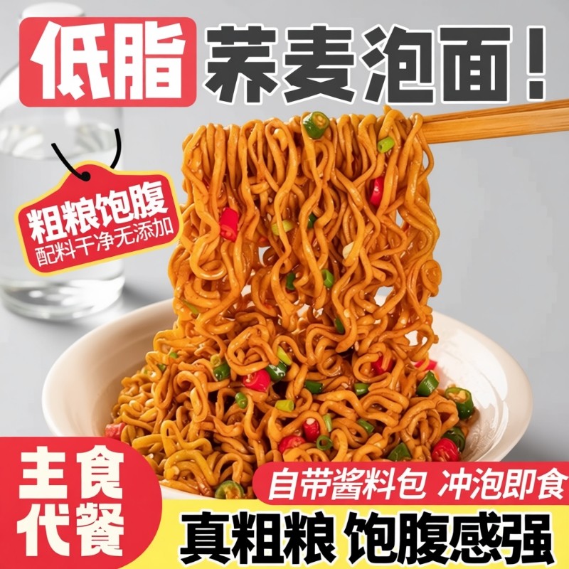 荞麦面0脂肪方便面减泡面低脂粗粮免煮全面条主食无糖精代餐食品