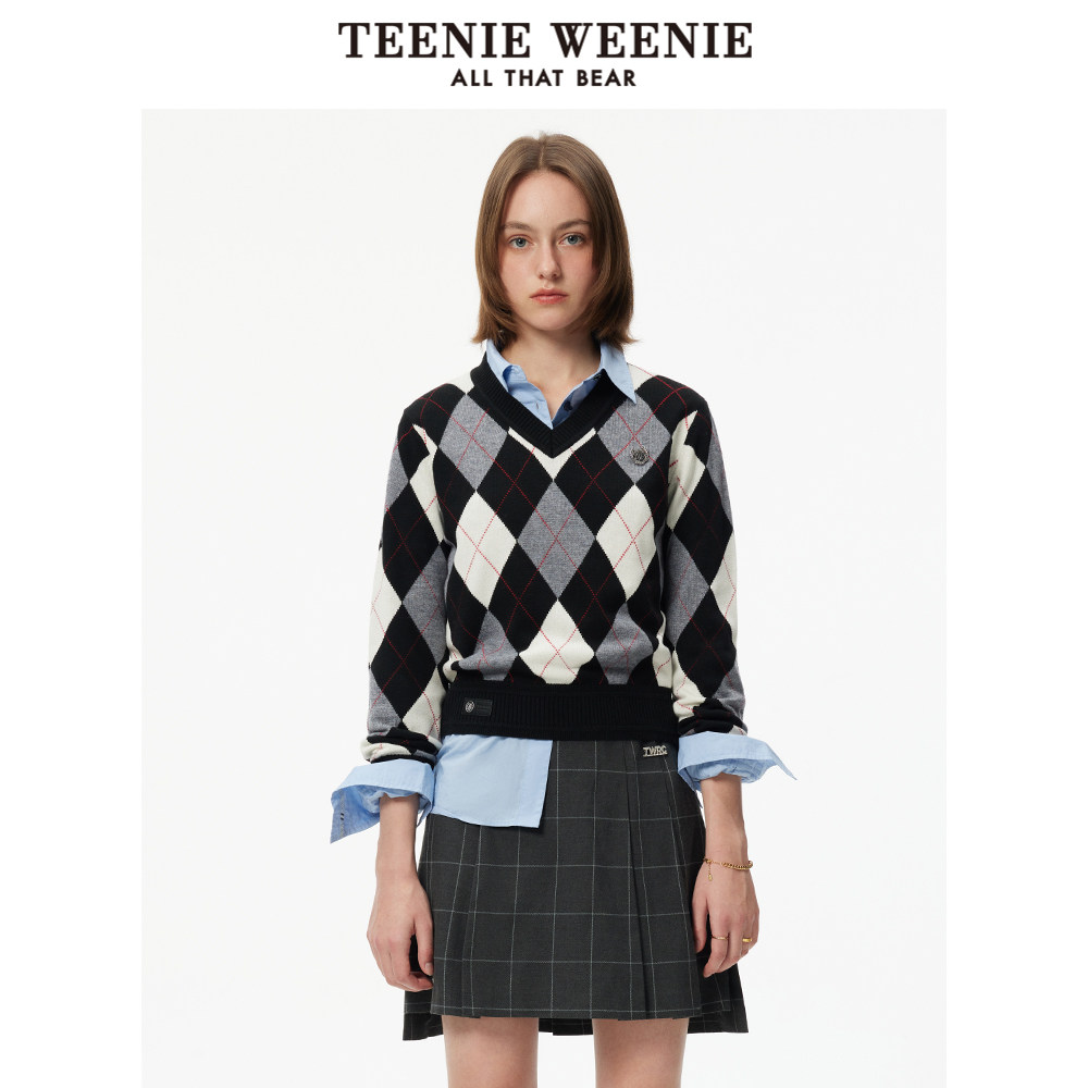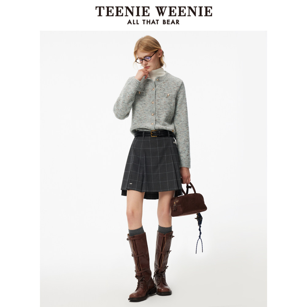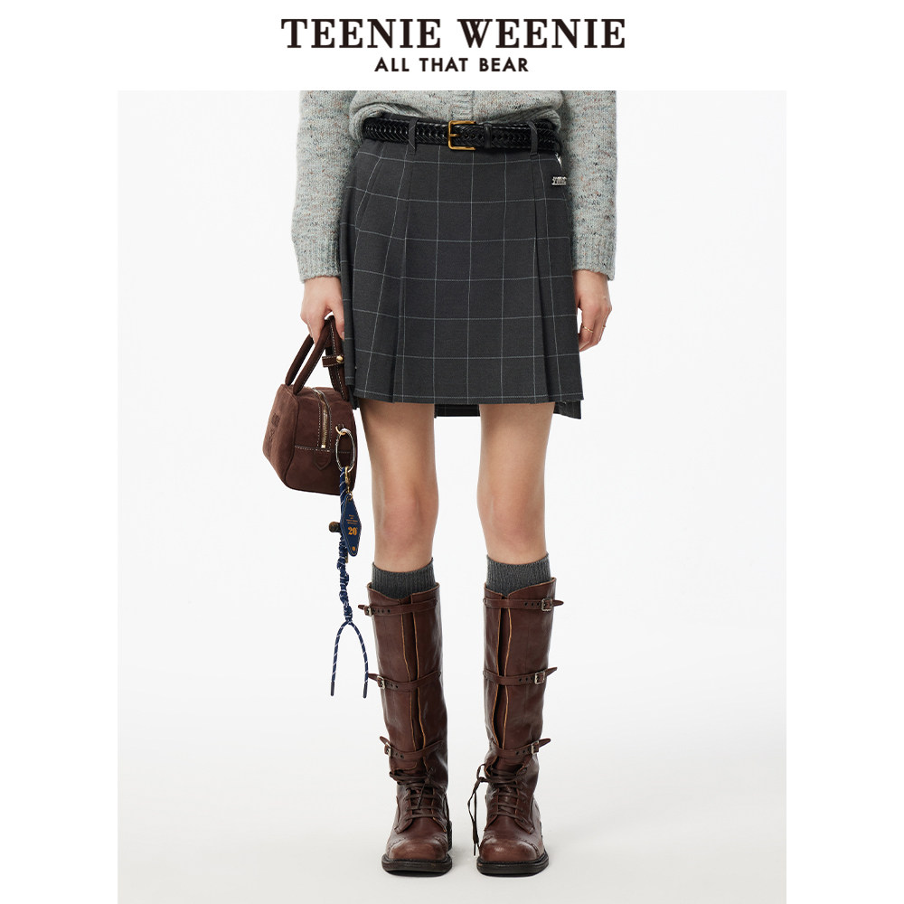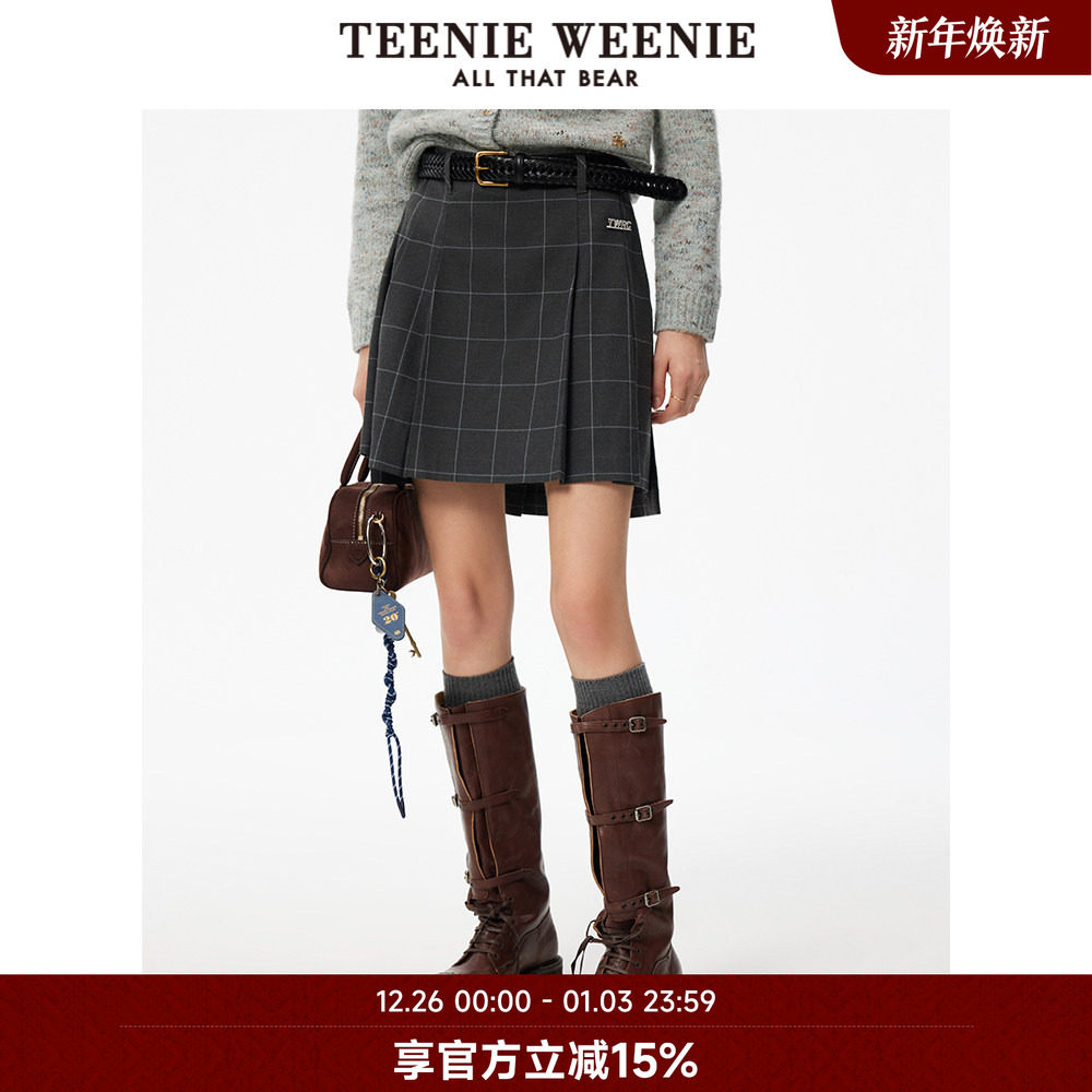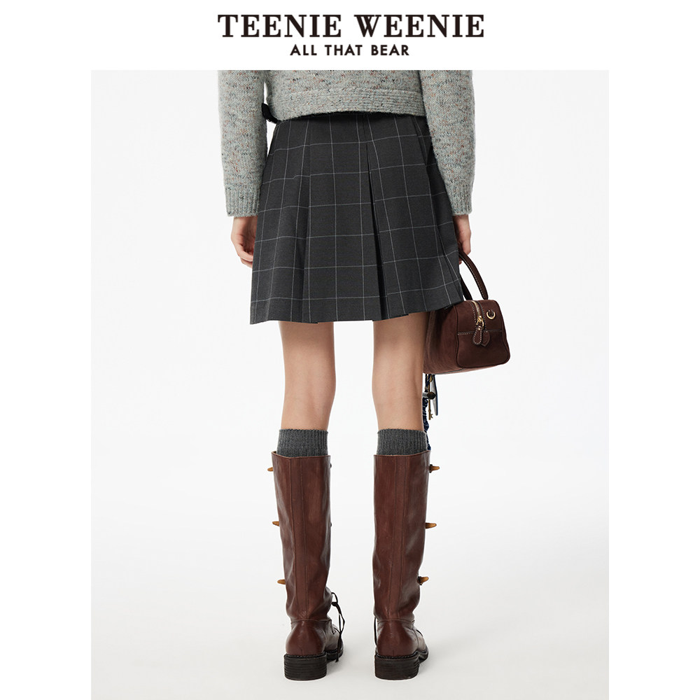TeenieWeenie小熊奥莱女装格纹半身裙冬季学院风休闲百褶裙子