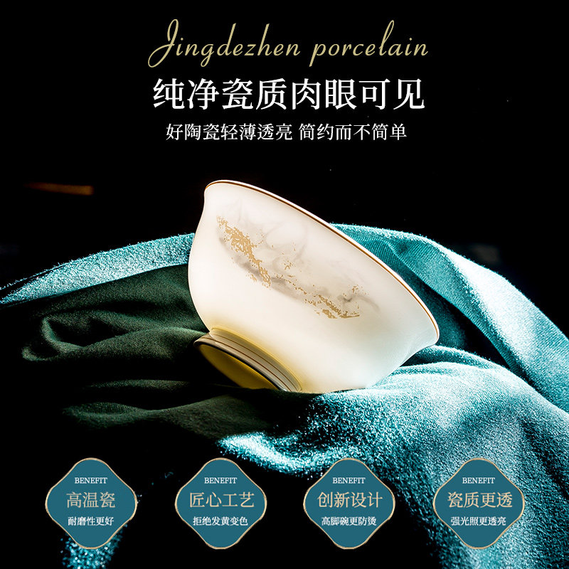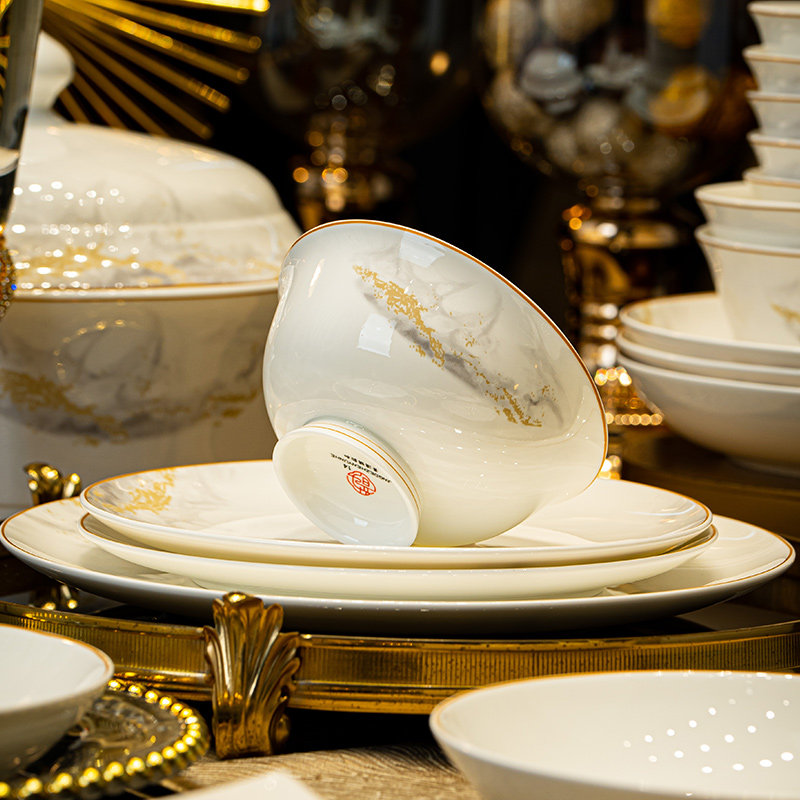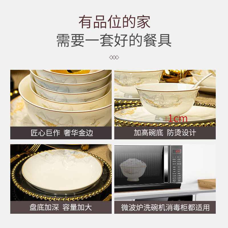 2025新款景德镇碗碟套装轻奢高级感家用碗盘筷组合乔迁釉下彩实用
