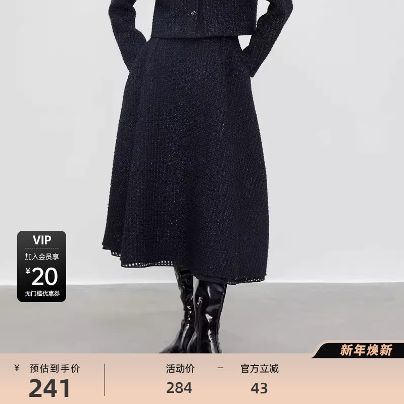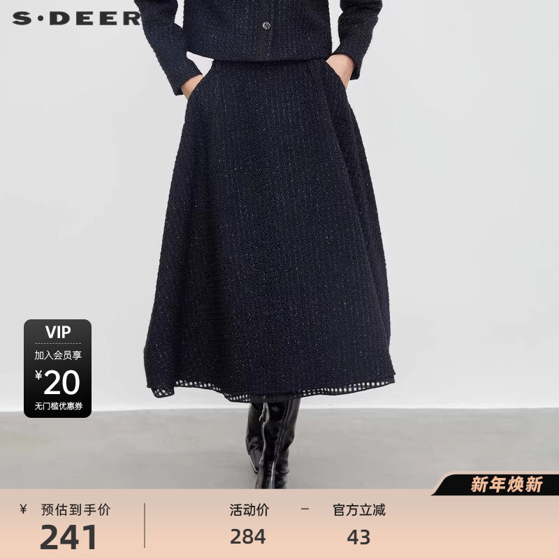 sdeer圣迪奥女装小香风套装格纹拼接毛呢A字伞裙S23481104