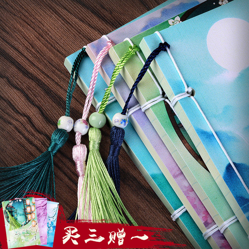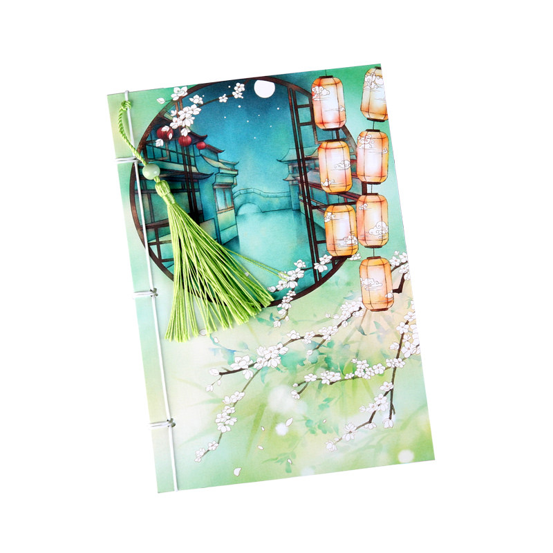 岁月坊A5古风记事本手账本创意彩页插画手绘日记本中国风复古本子男女学生清新线装本古典笔记本文具批发定制