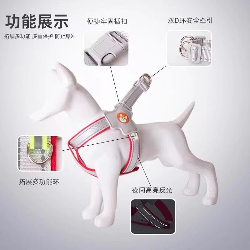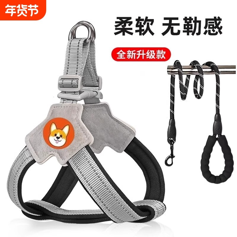 狗狗牵引绳中小型柴犬胸背带背心式宠物遛狗绳柯基脖圈防咬不勒脖