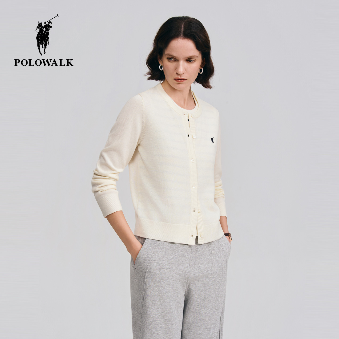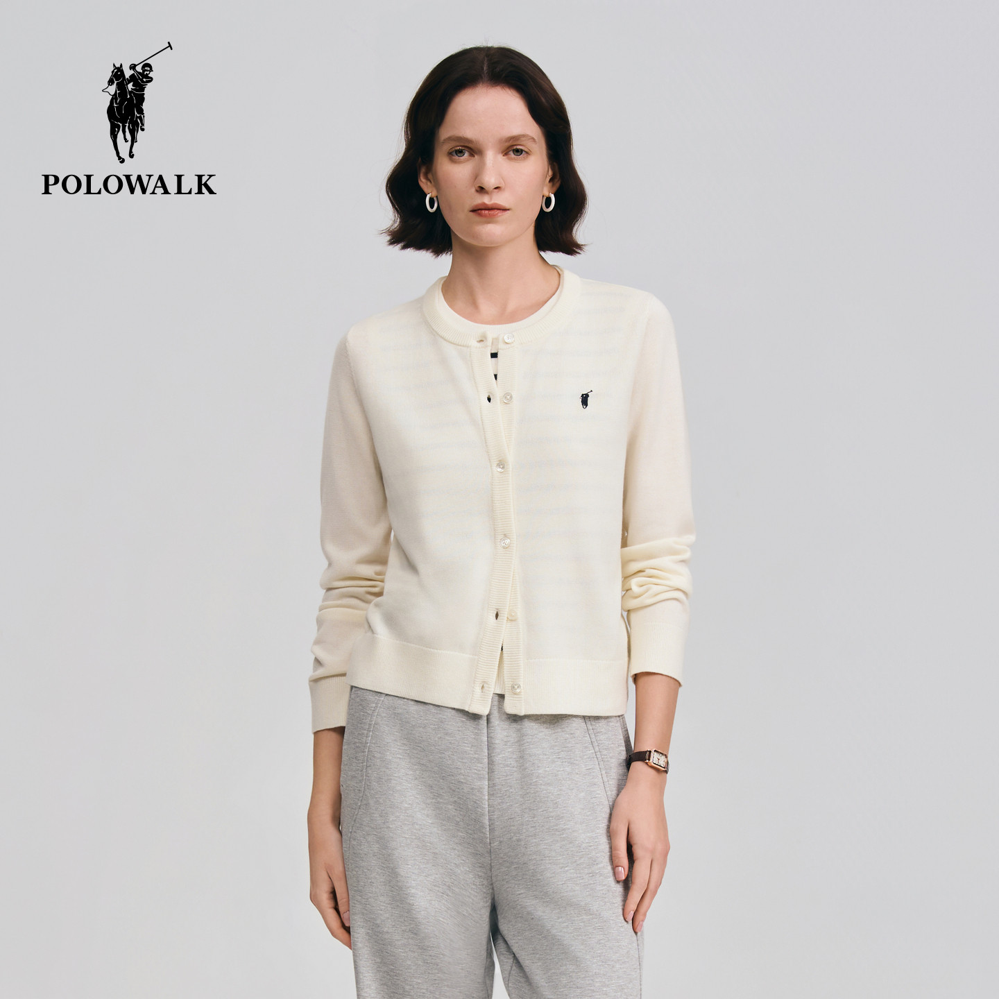 【含绵羊毛】POLOWALK女式长袖针织衫2026春季新品假两件针织开衫