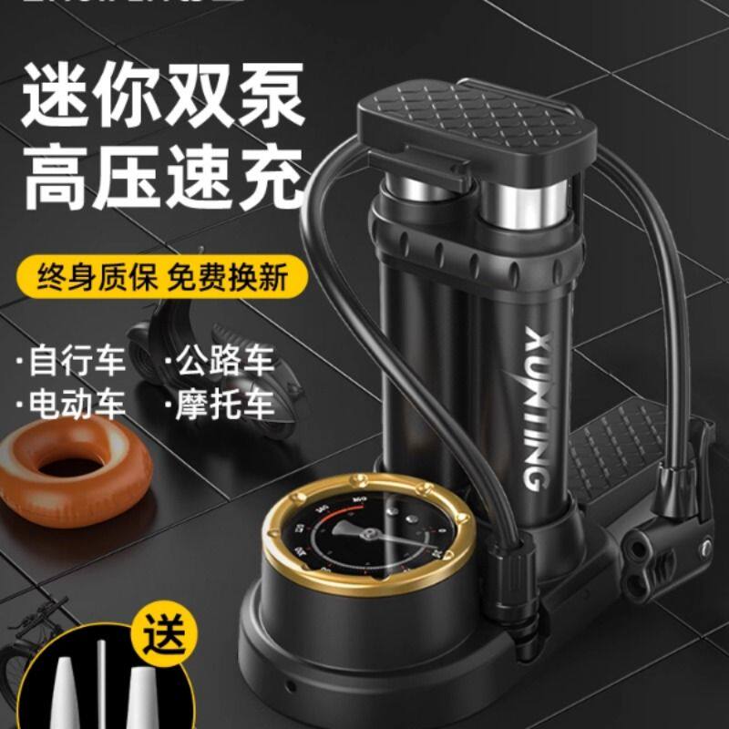 高压打气筒自行车家用通用电动车电瓶摩托气管篮球便携脚踩充气泵