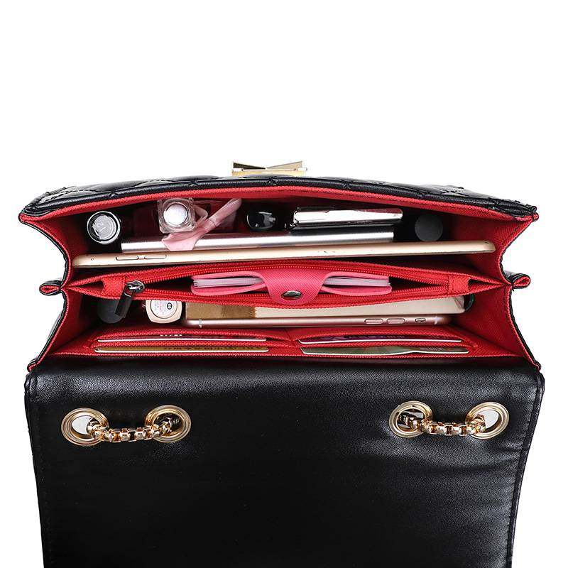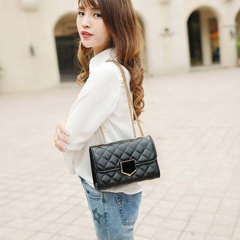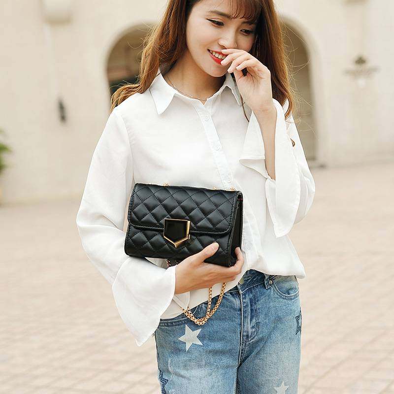 爱马女仕新款小包包女新款简约大气菱格链条包真皮斜挎单肩手提包