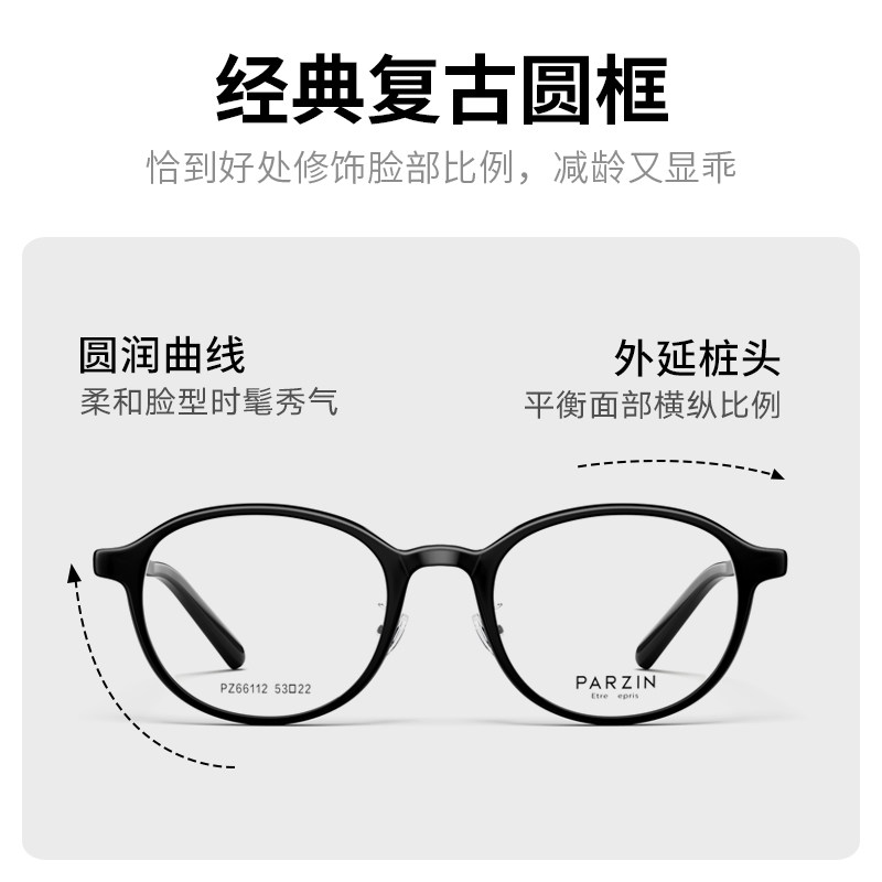 帕森25年新品圆框板材防蓝光眼镜女复古素颜黑框近视镜男PZ66112