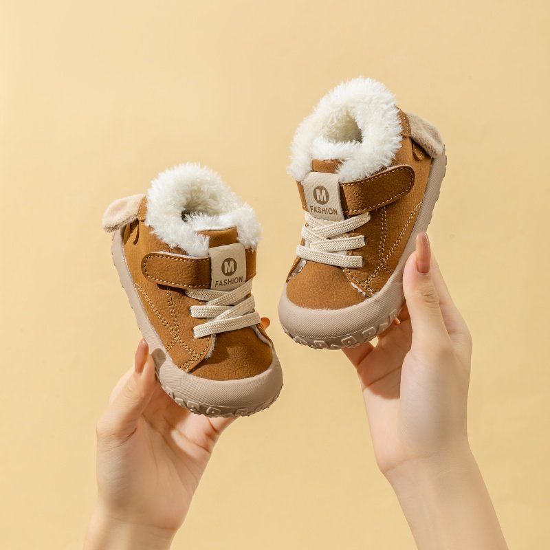 婧麒宝宝学步鞋秋冬款0-1-2岁婴儿防滑软底棉鞋男女小童加绒单鞋