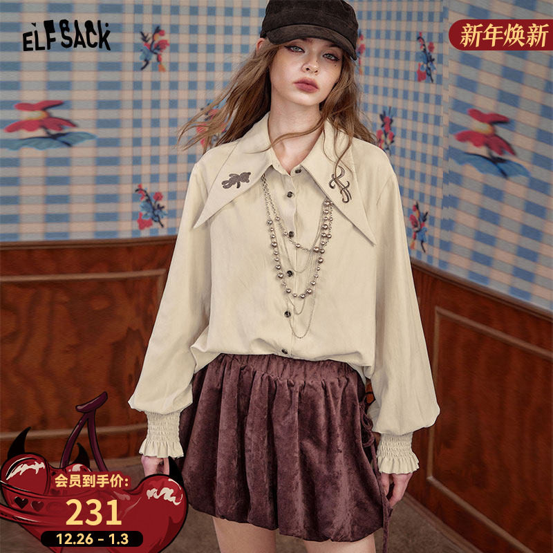妖精的口袋法式宫廷风木耳边衬衫女2025年早秋新款设计感长袖衬衣