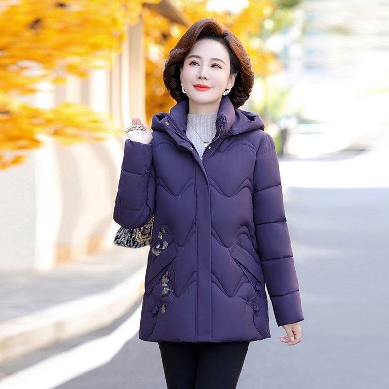 【杉家】撤标撤柜!2025秋冬女士时尚保暖绣花中老年可脱卸帽棉服