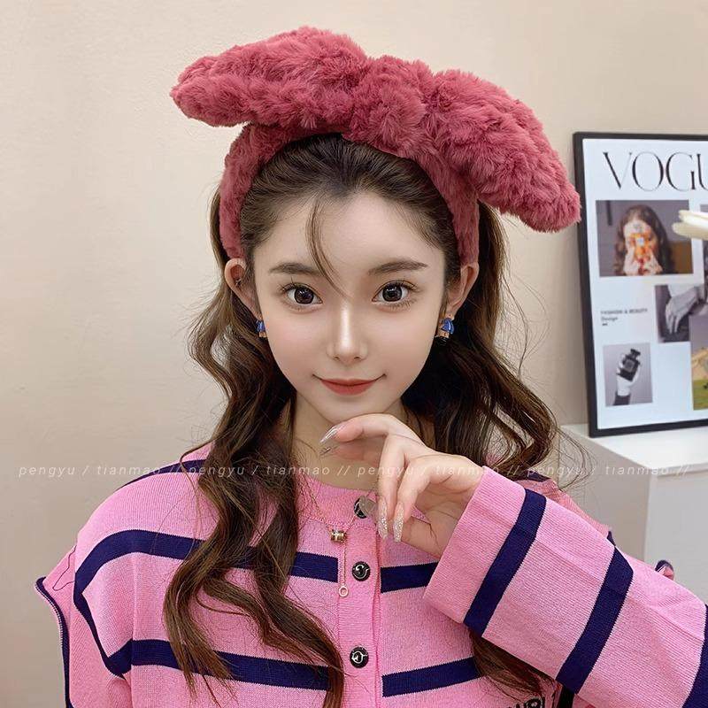 显脸小女款迪士尼兔耳朵发箍女高级感洋气毛绒时尚洗脸高颅顶头箍
