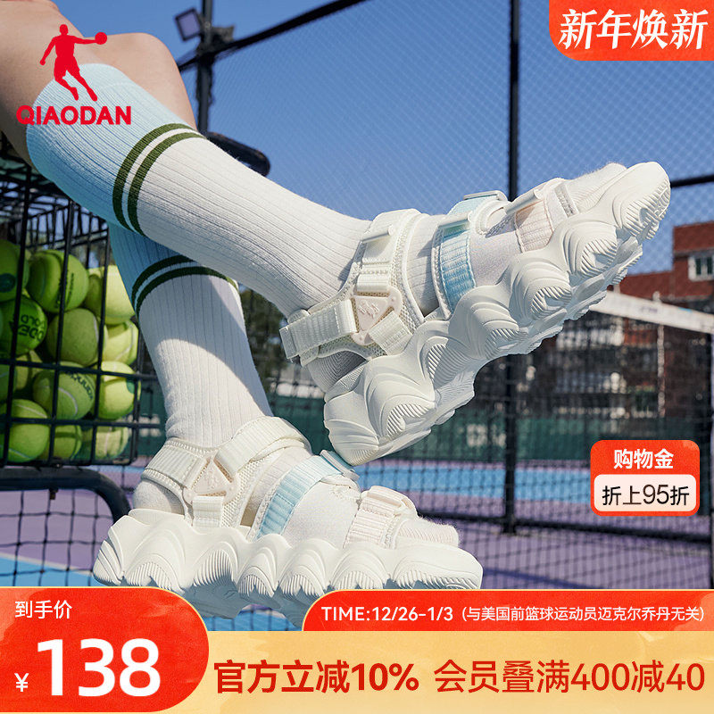 乔丹沙滩鞋凉鞋女2025夏季新款白色百搭魔术贴凉拖镂空透气女鞋子