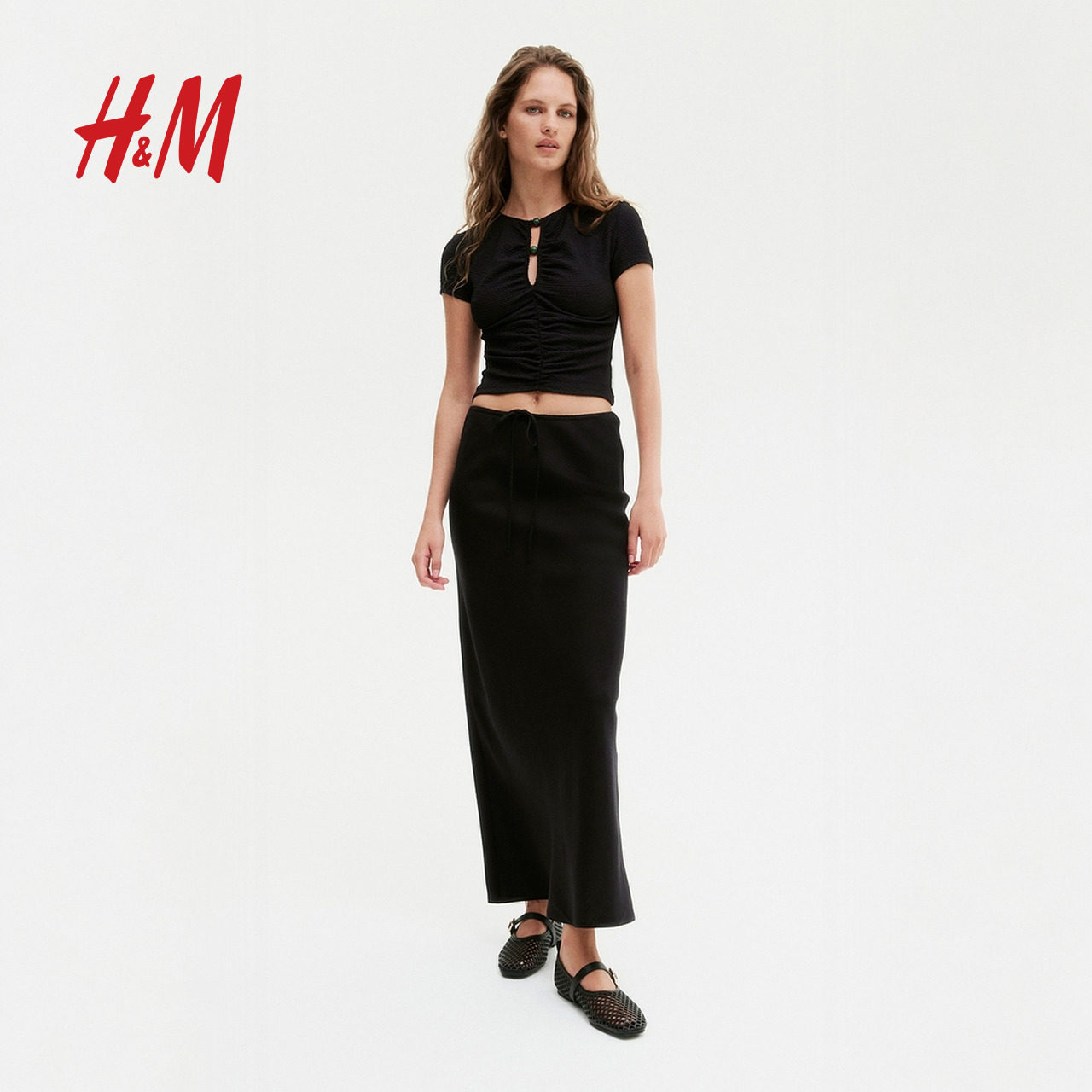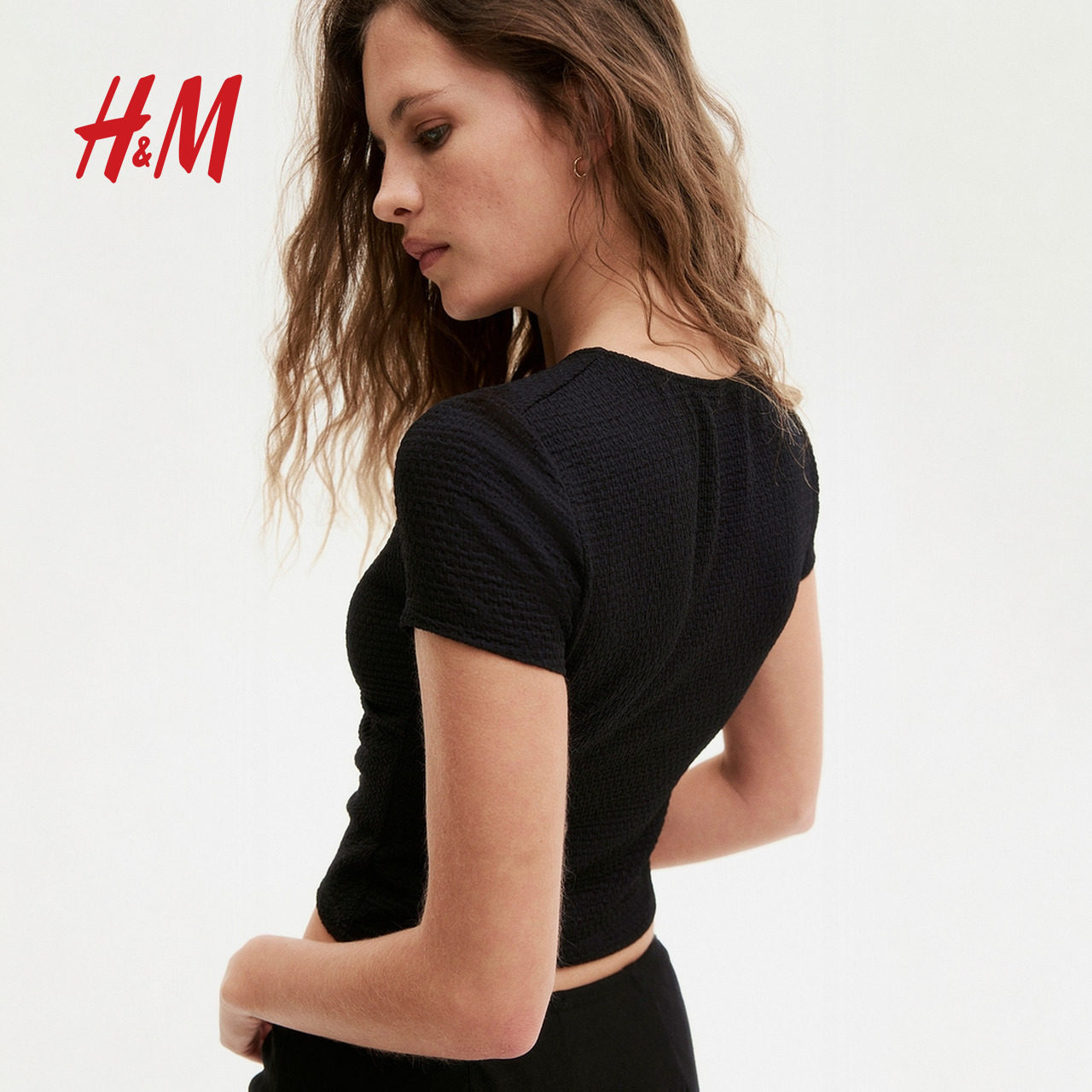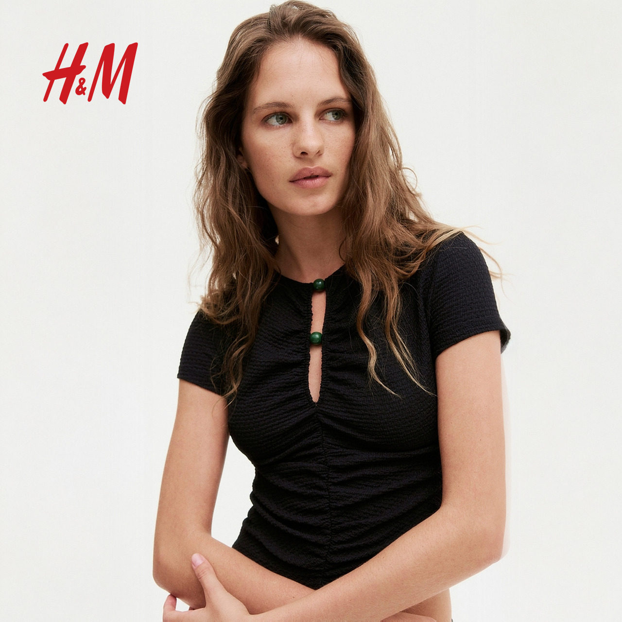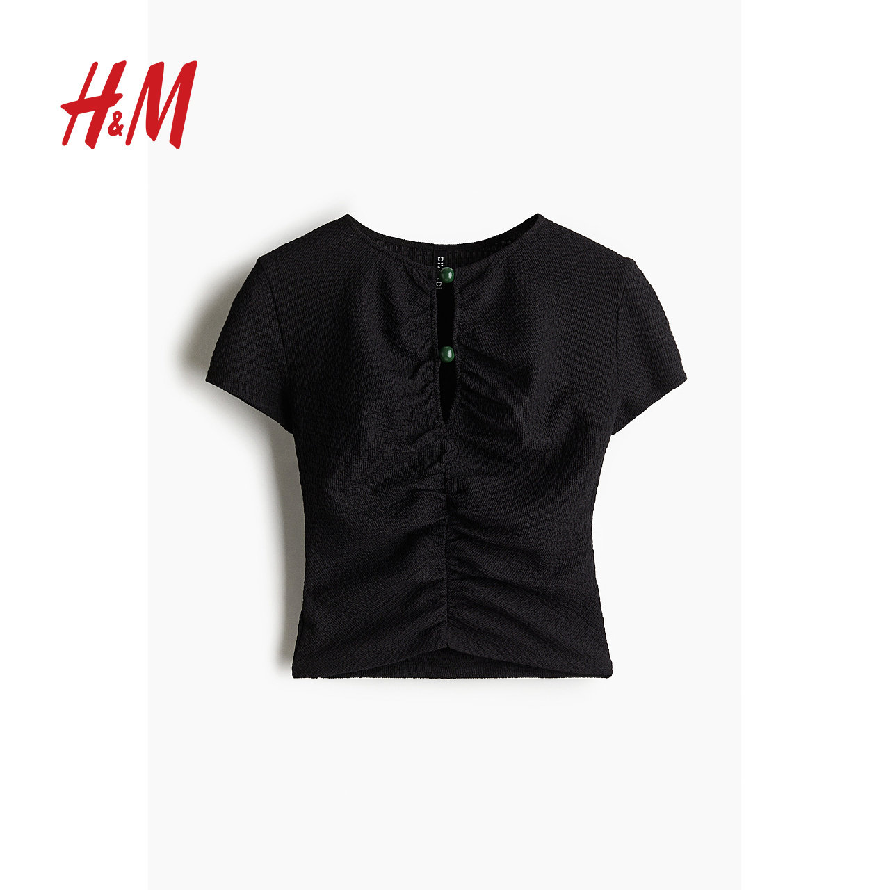 HM2025年冬季新款女装时尚休闲休闲珠饰褶皱上衣1283650