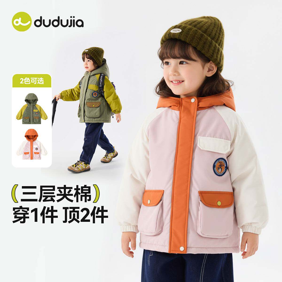 嘟嘟家男童冬装外套儿童棉服冬季宝宝夹棉加厚上衣女童小棉袄三防