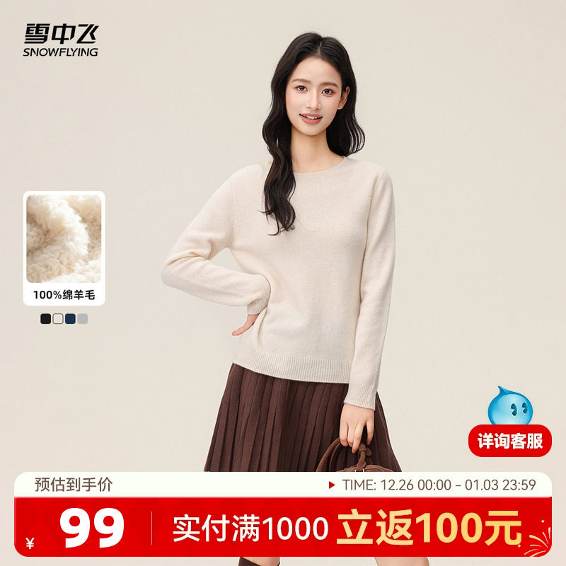 雪中飞25秋新款女士短款圆领100棉羊毛打底衫柔软舒适简约纯色W