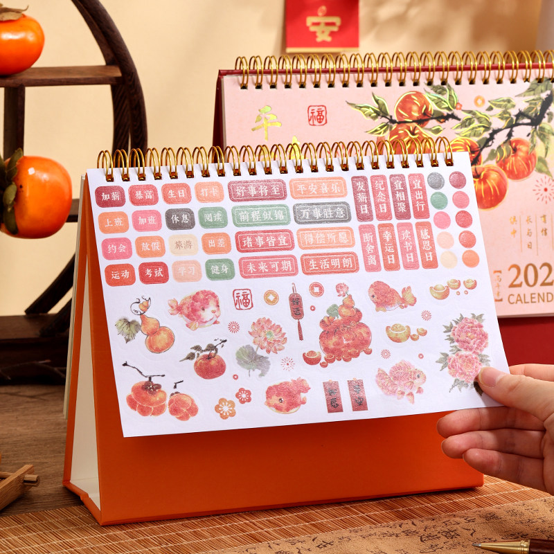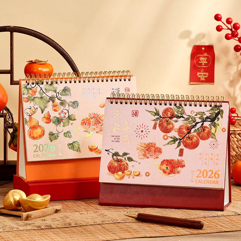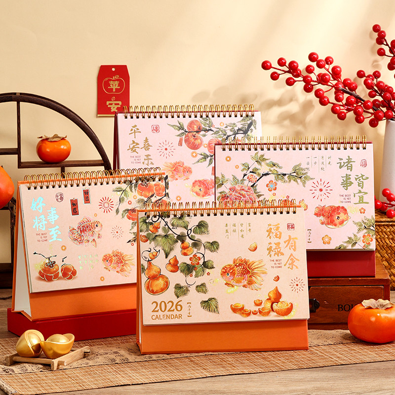 2026年金鲤呈祥台历新款日历中国风办公室桌面摆件新年锦鲤月历中考高考倒计时提醒牌日程计划表打卡可定制