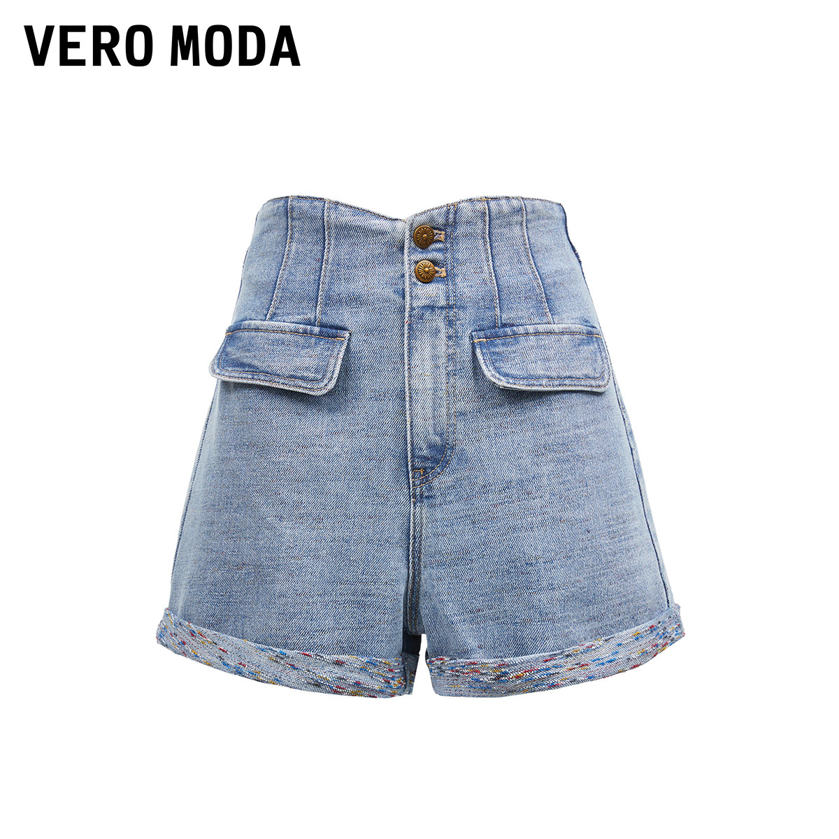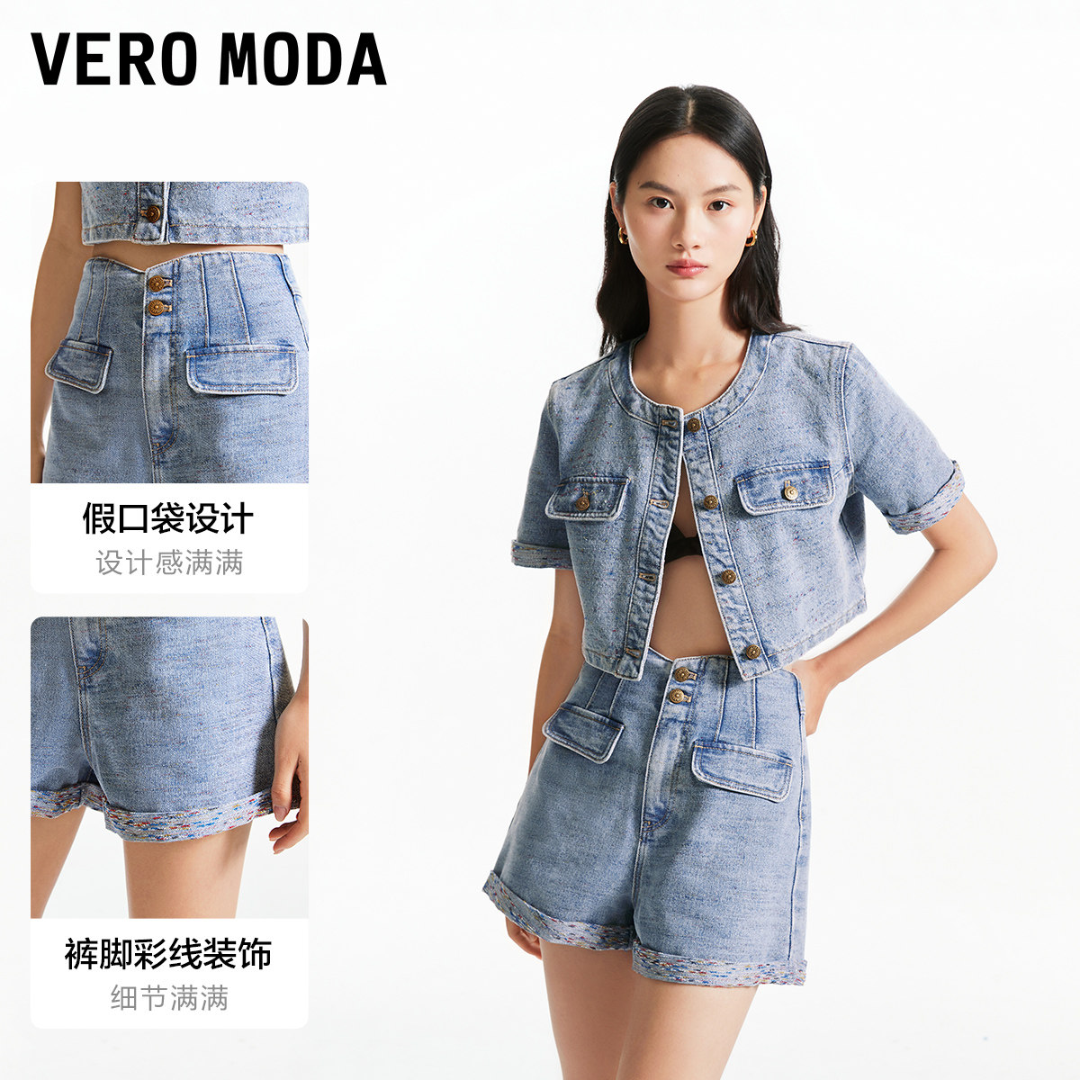 Vero Moda奥莱牛仔短裤子女夏季新款高腰直筒口袋装饰百搭气质