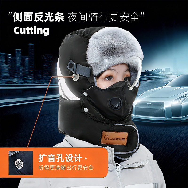 冬季骑行帽子女保暖防寒风神器套头电动车遮脸男面罩棉雷锋帽口罩