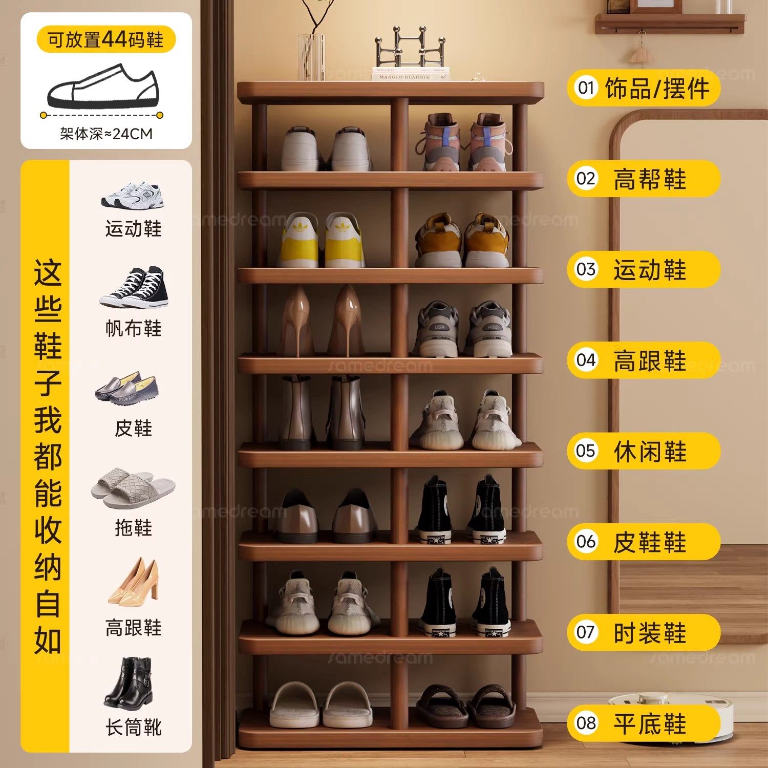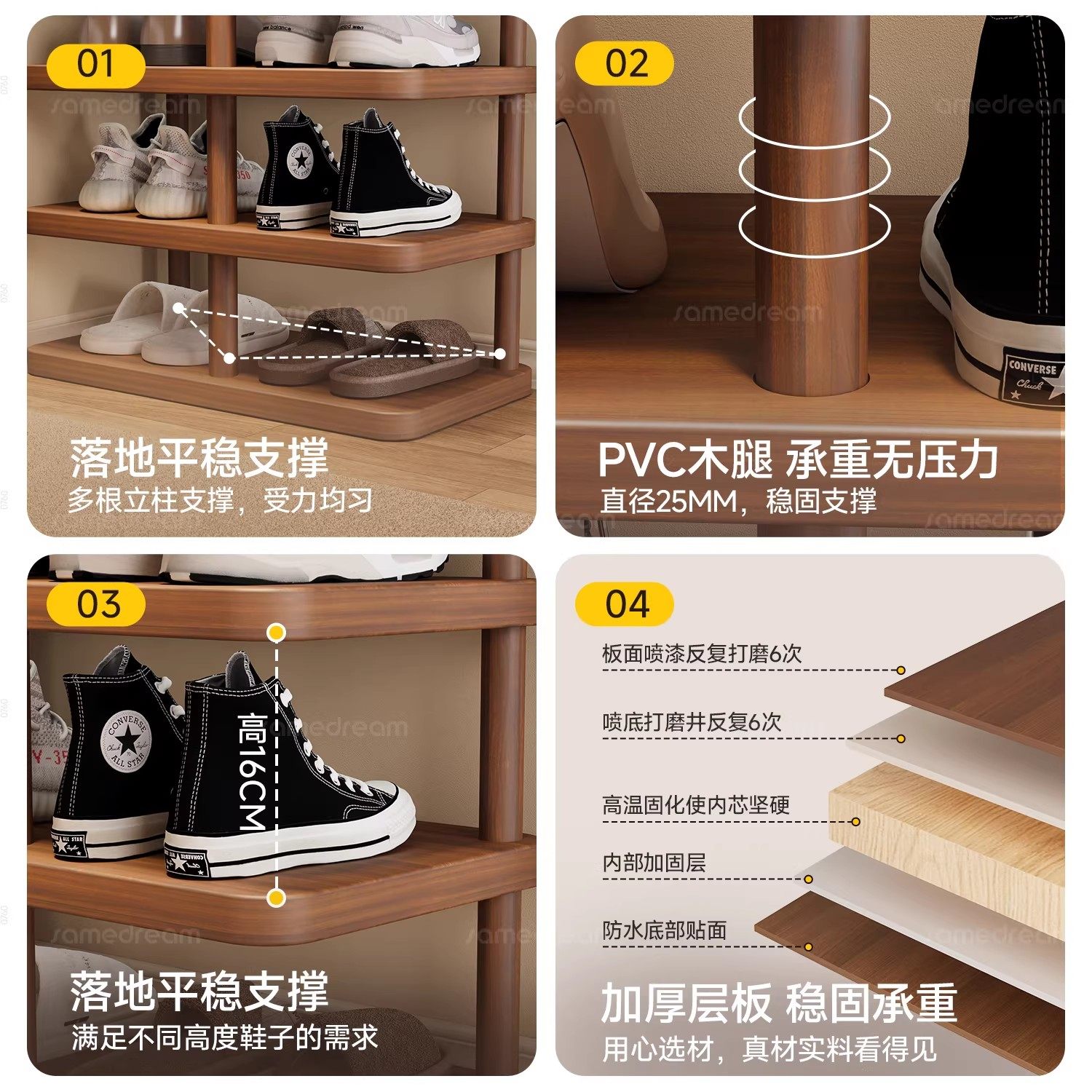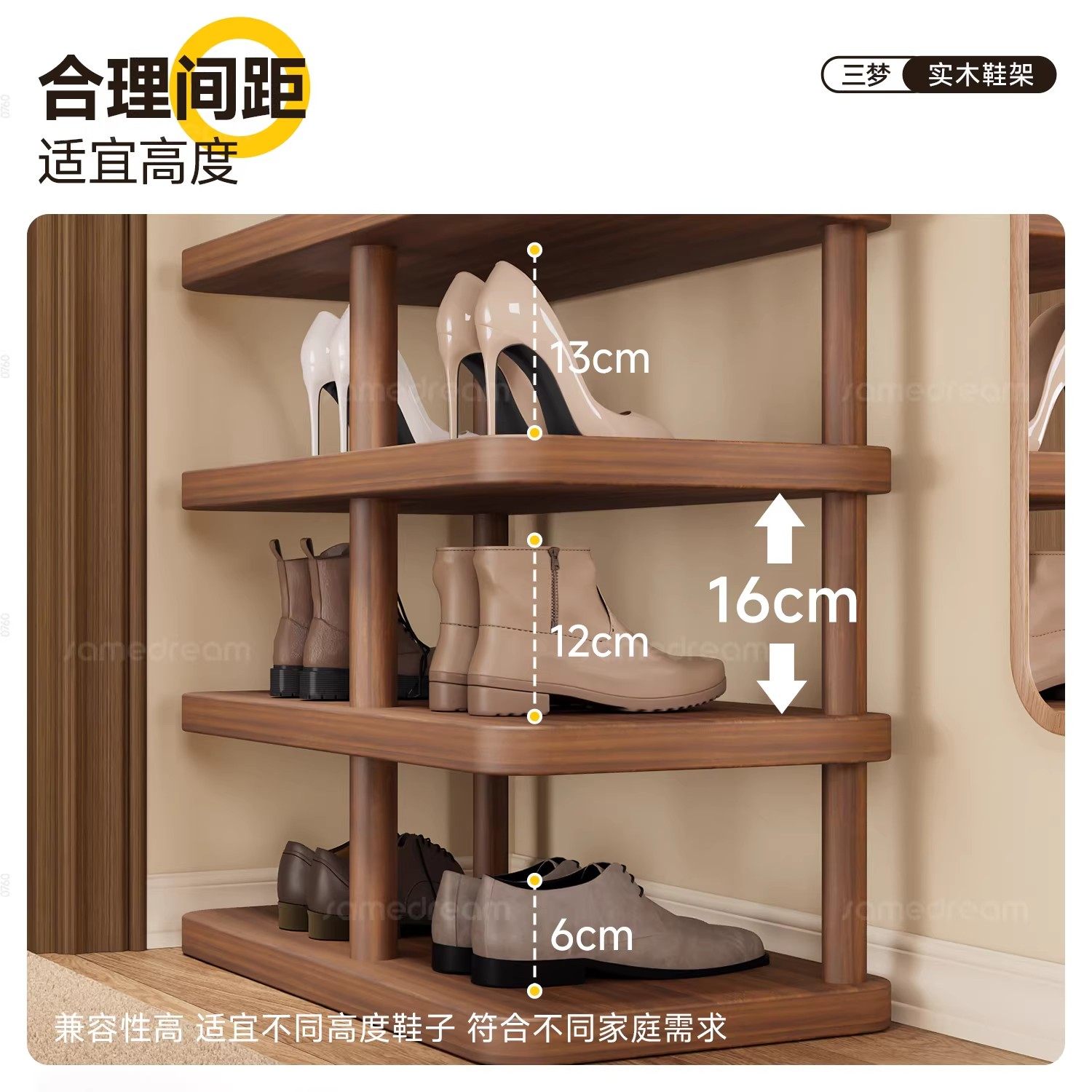 三梦实木腿鞋架简易多层家用方入户门小窄门口一体靠墙鞋柜鞋子