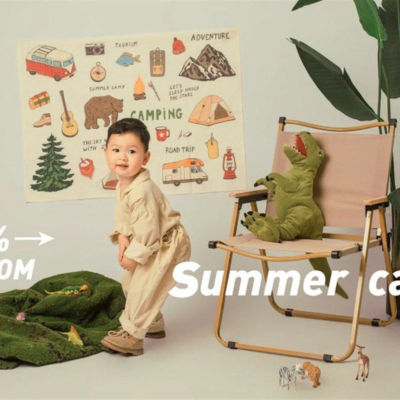 影楼儿童写真摄影道具夏日营地背景布外景拍摄露营椅子北欧风毯子