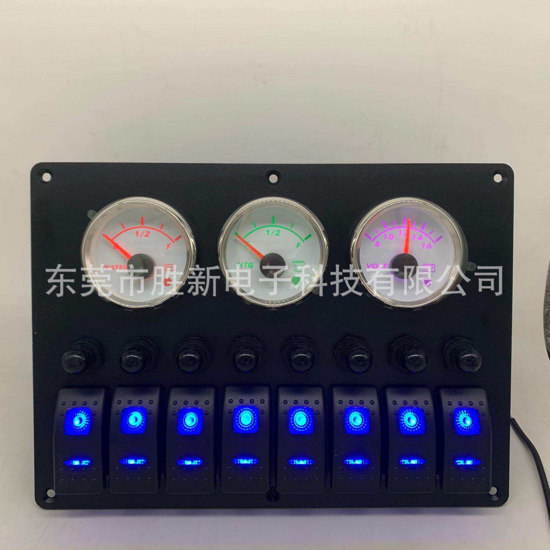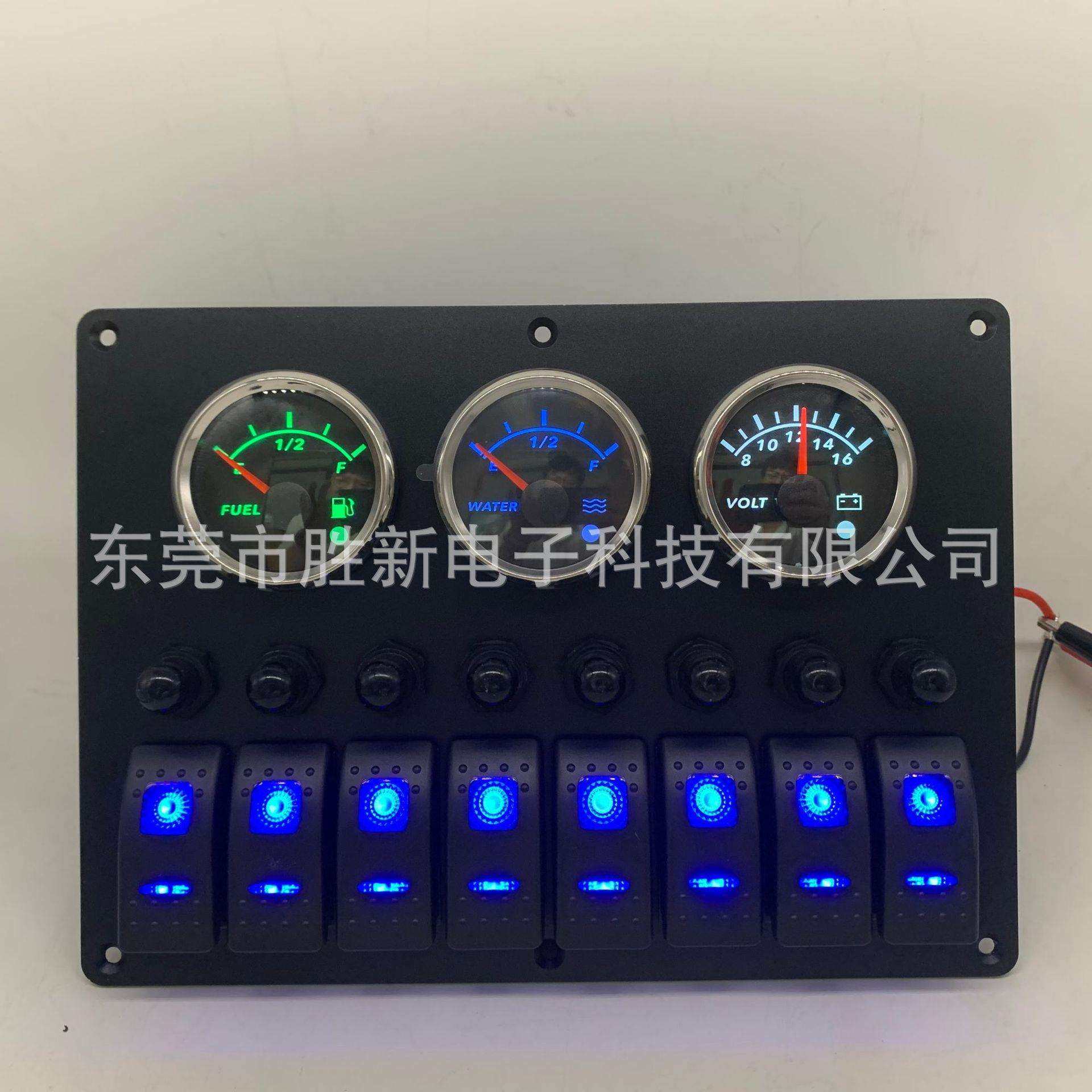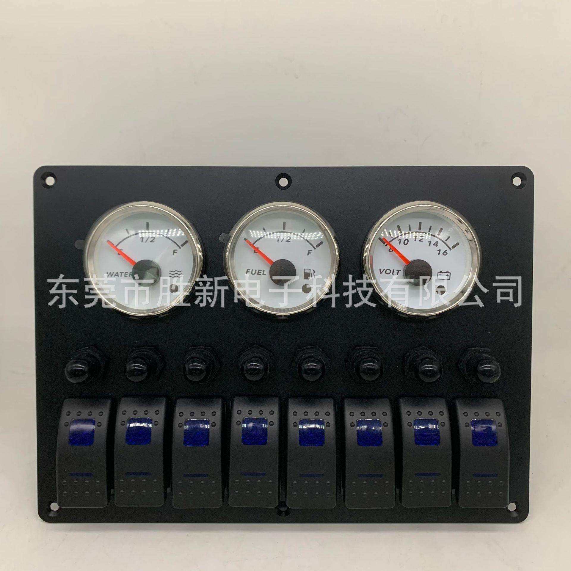 8位船型开关面板带污水清水电压表房车改装游艇船形组合开关户外