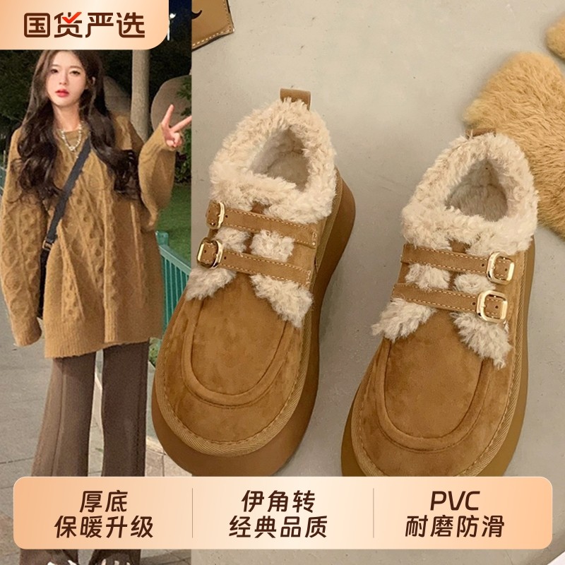 低帮厚底雪地靴女2025新款冬季懒人一脚蹬毛毛棉鞋加绒加厚女鞋子