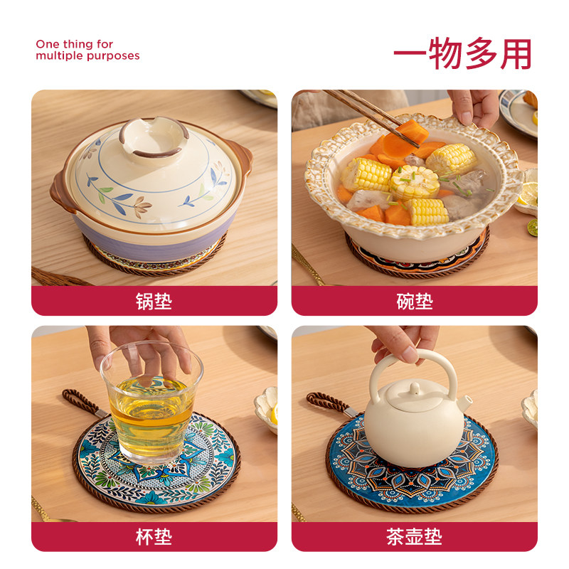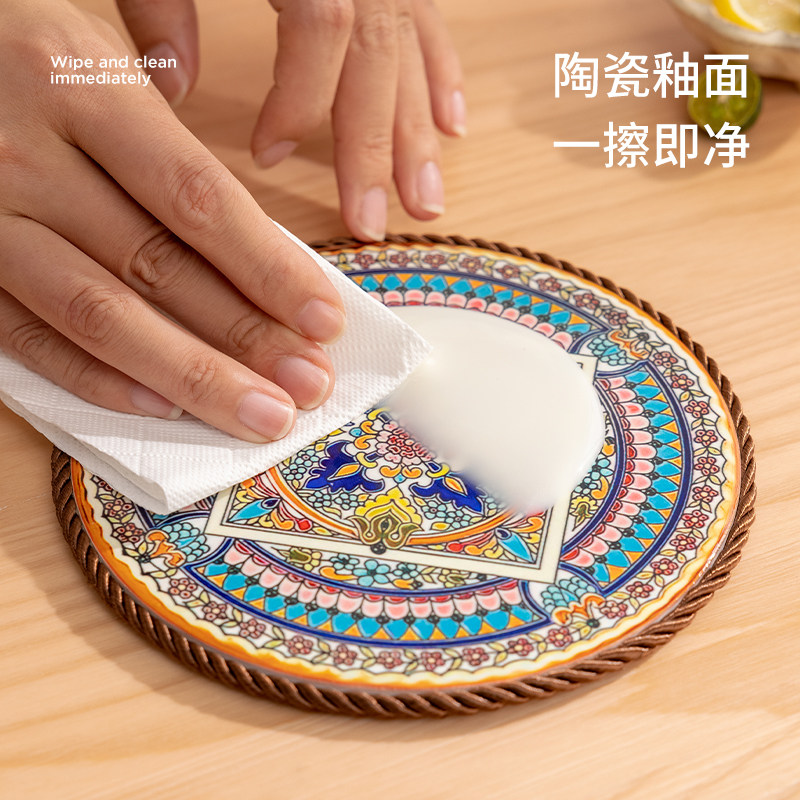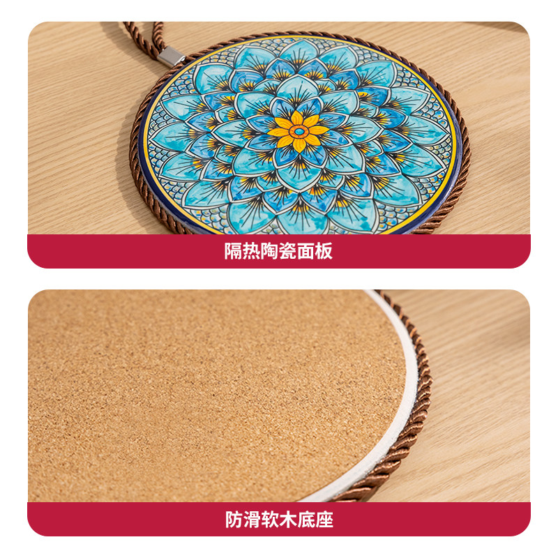 隔热垫陶瓷耐高温复古珐琅中式高级感餐桌防烫锅垫砂锅专用碗杯垫
