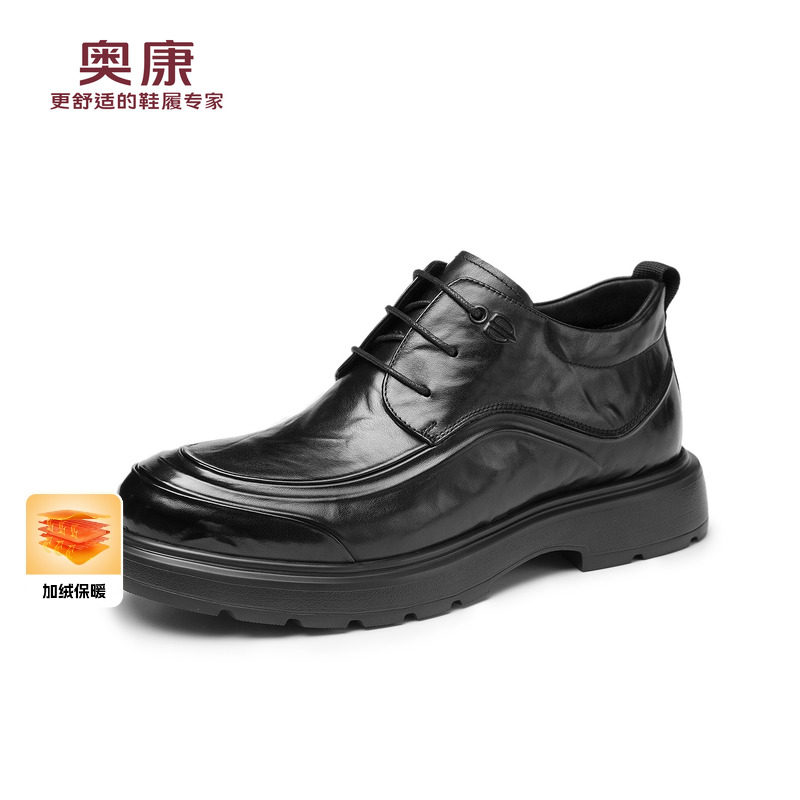 奥康 男鞋秋冬新款男士皮鞋商务休闲皮鞋厚底加绒保暖爸爸棉鞋N