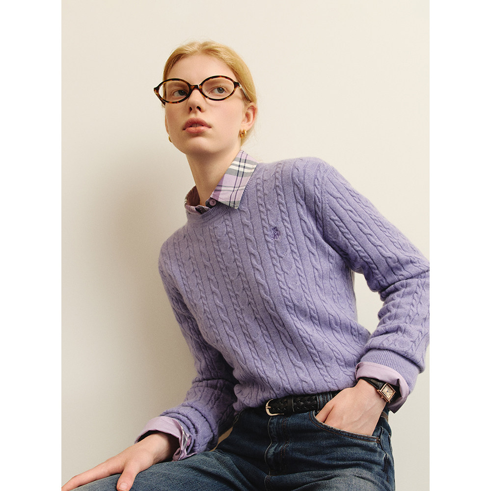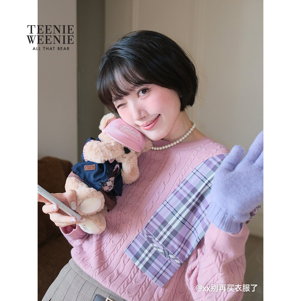 【四季绞花】TeenieWeenie小熊女针织衫25冬绵羊毛山羊绒圆领毛衣
