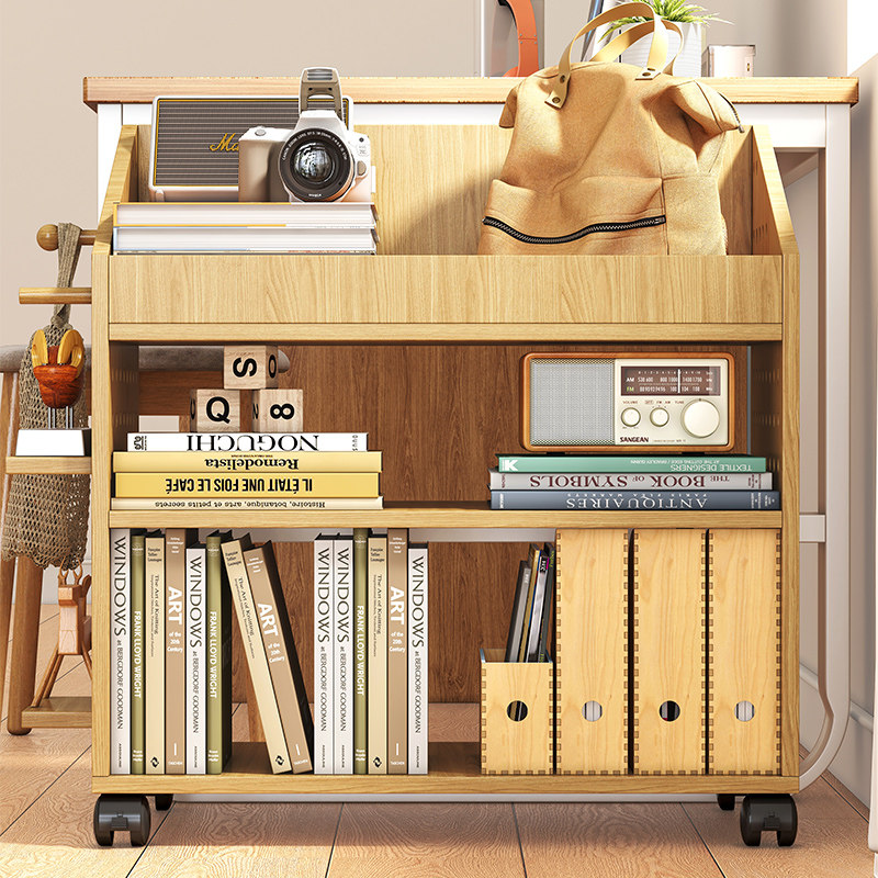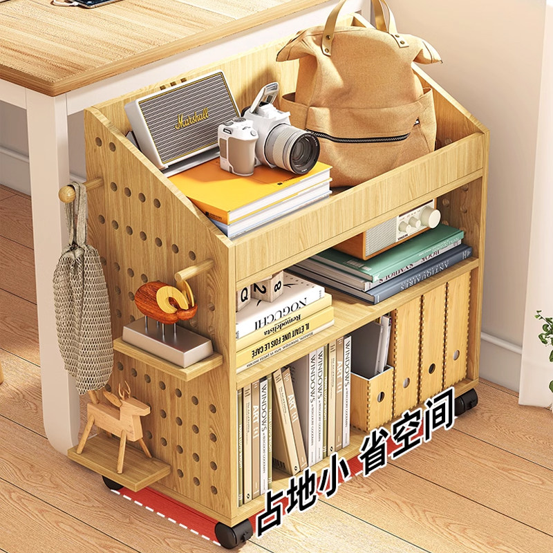 桌下可移动办公文件架学生书本整理柜书桌旁落地置物架实木多层书柜