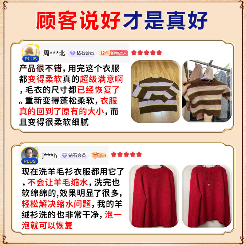 羊毛衫缩水还原恢复剂第一名羊绒衫毛衣服放大蓬松修复原洗涤剂J