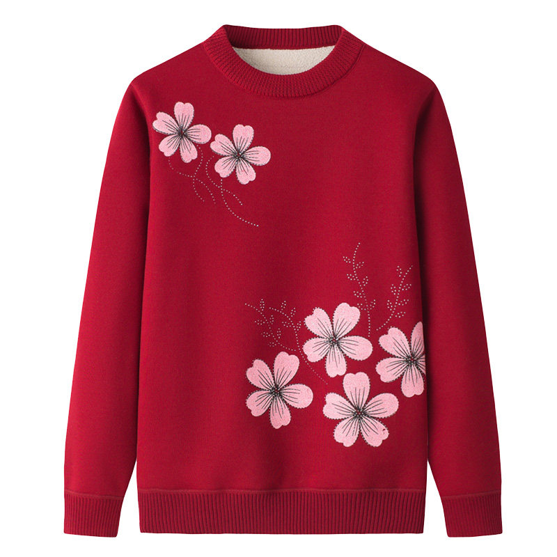 【蜜蜂欢乐社】妍影妈妈冬装加绒毛衣烫钻针织衫