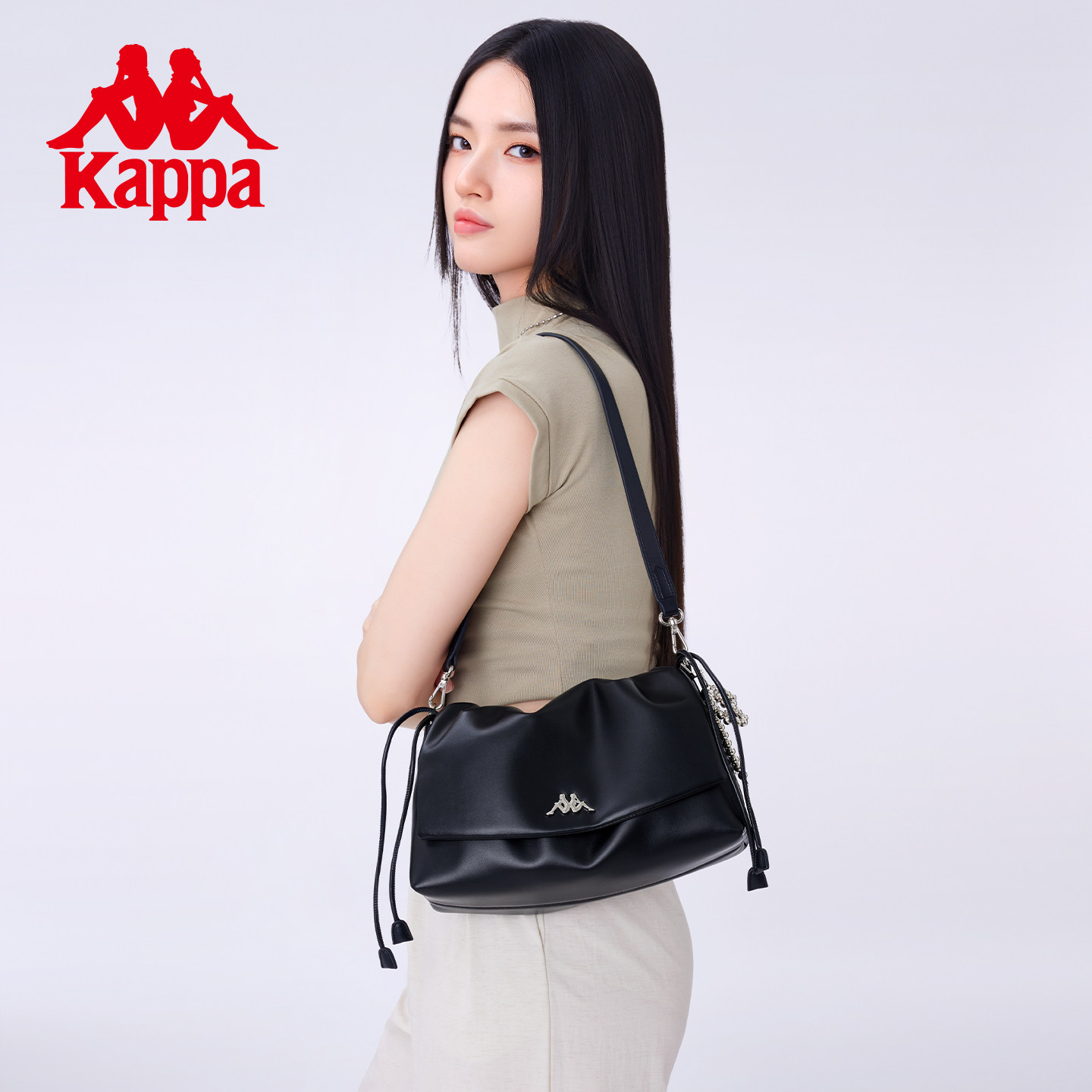 Kappa卡帕 25年新款云朵包抽绳翻盖单肩包腋下大容量通勤斜挎包