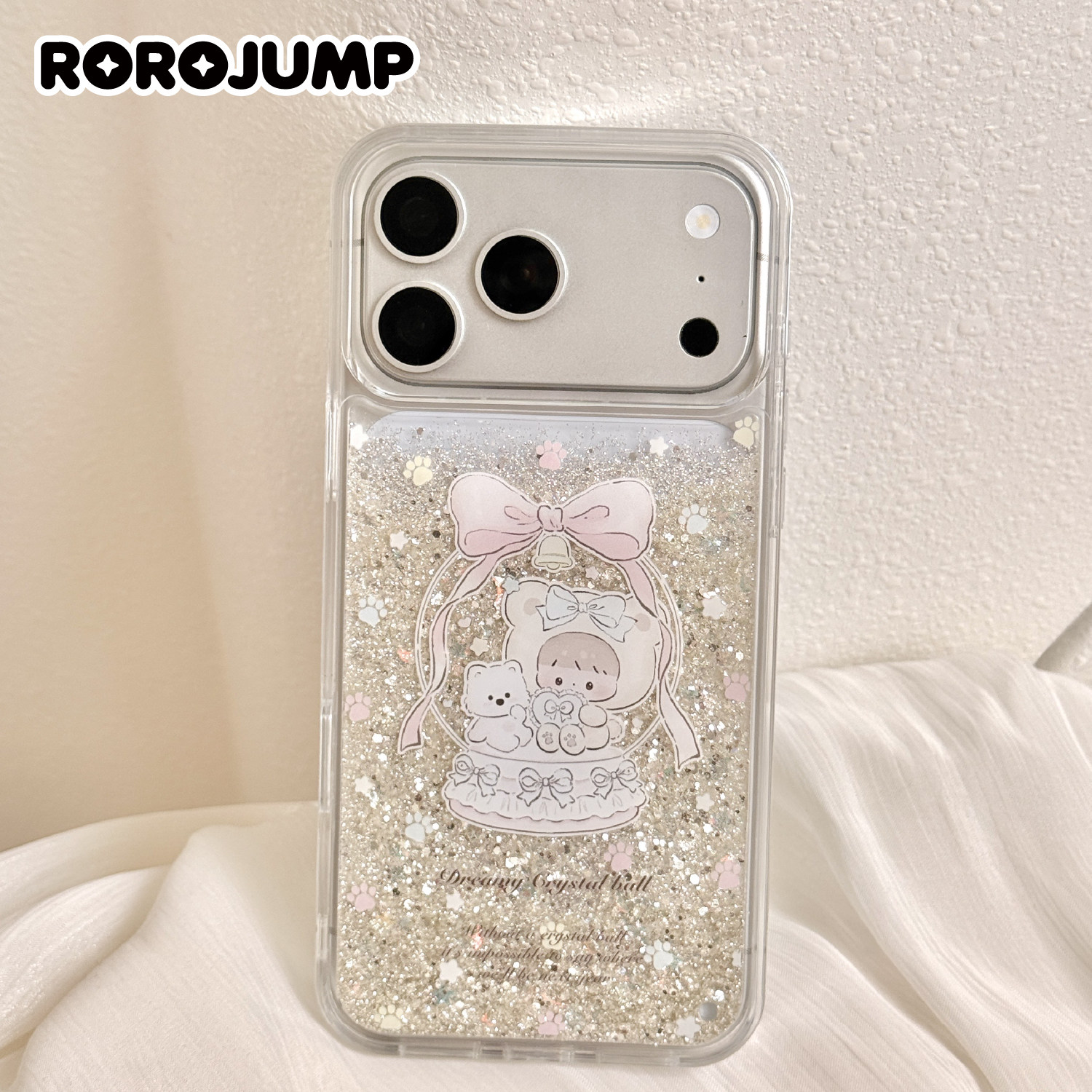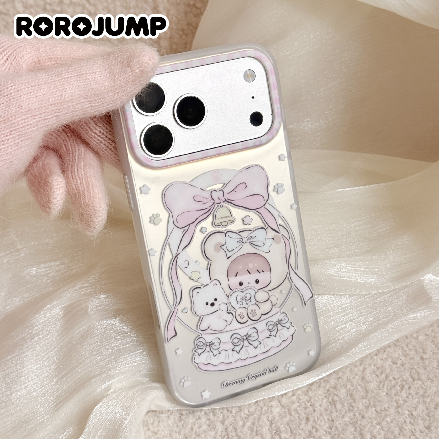 肉肉酱蝴蝶结水晶球适用iPhone17promax磁吸手机壳原创新款防摔苹果16pro全包一体肤感保护卡通可爱保护套女