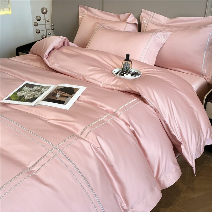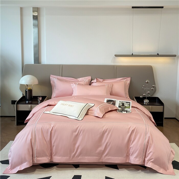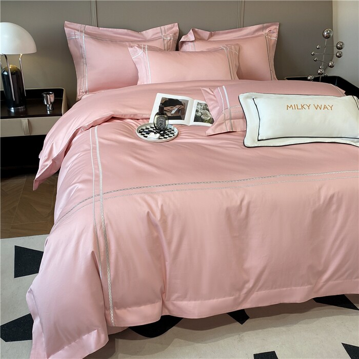 100支长绒棉四件套纯棉全棉纯色匹简约刺绣床品套件高档床上用品