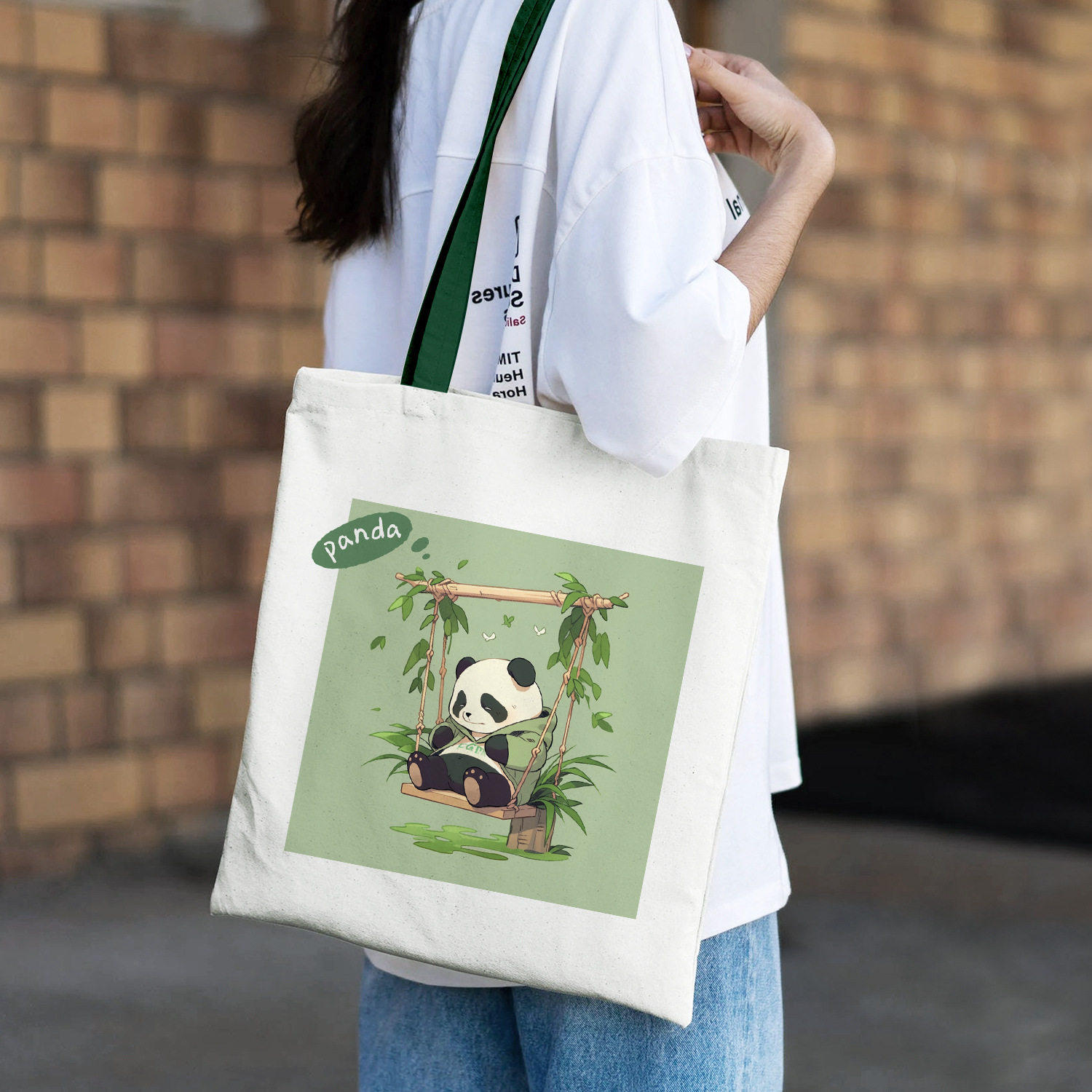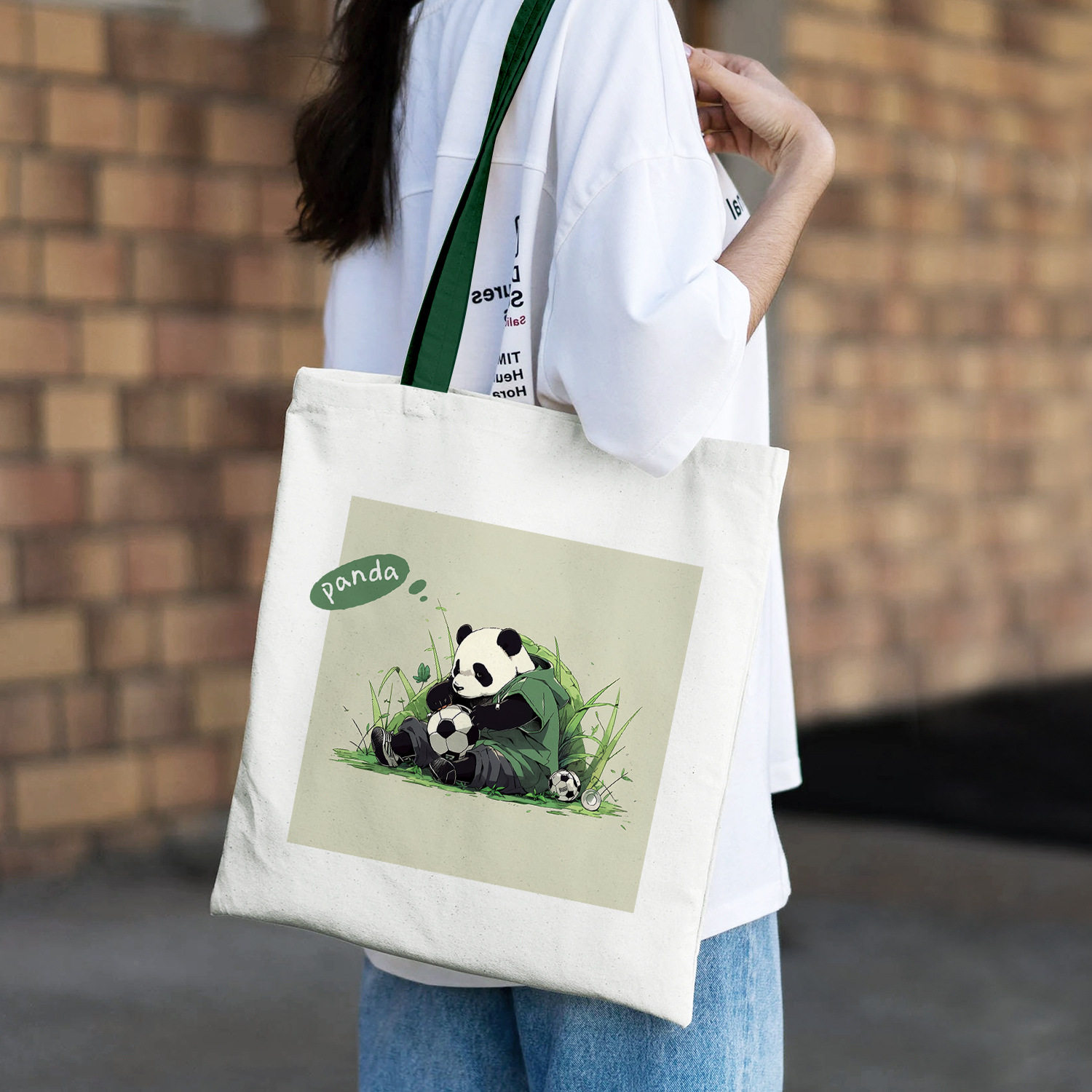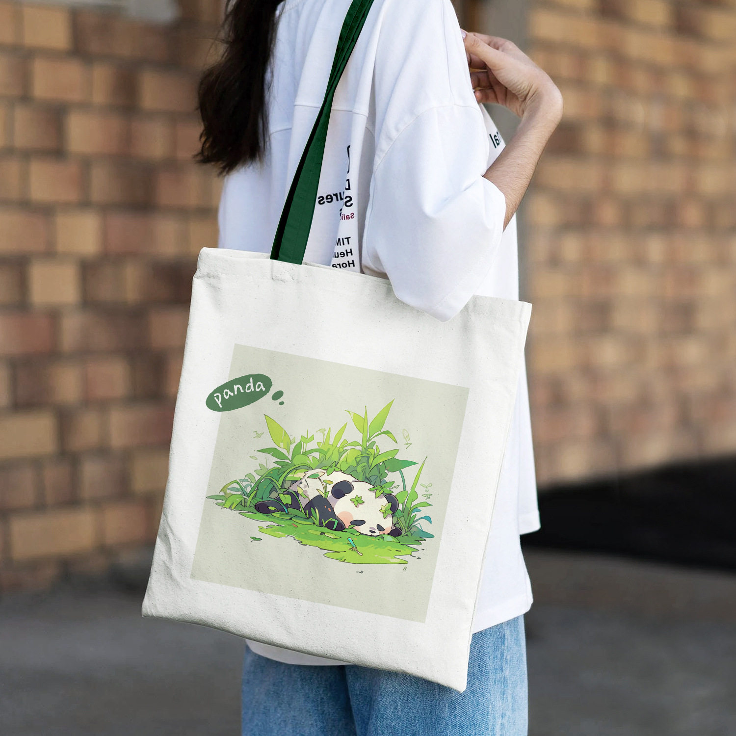 帆布袋熊猫环保袋购物袋现货大容量棉布袋大学生通勤帆布包