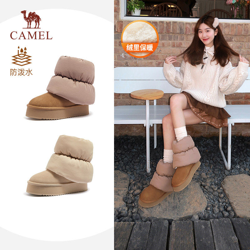 骆驼女鞋2025冬季新款雪地靴短靴毛拖棉靴加绒加厚保暖棉鞋毛毛鞋
