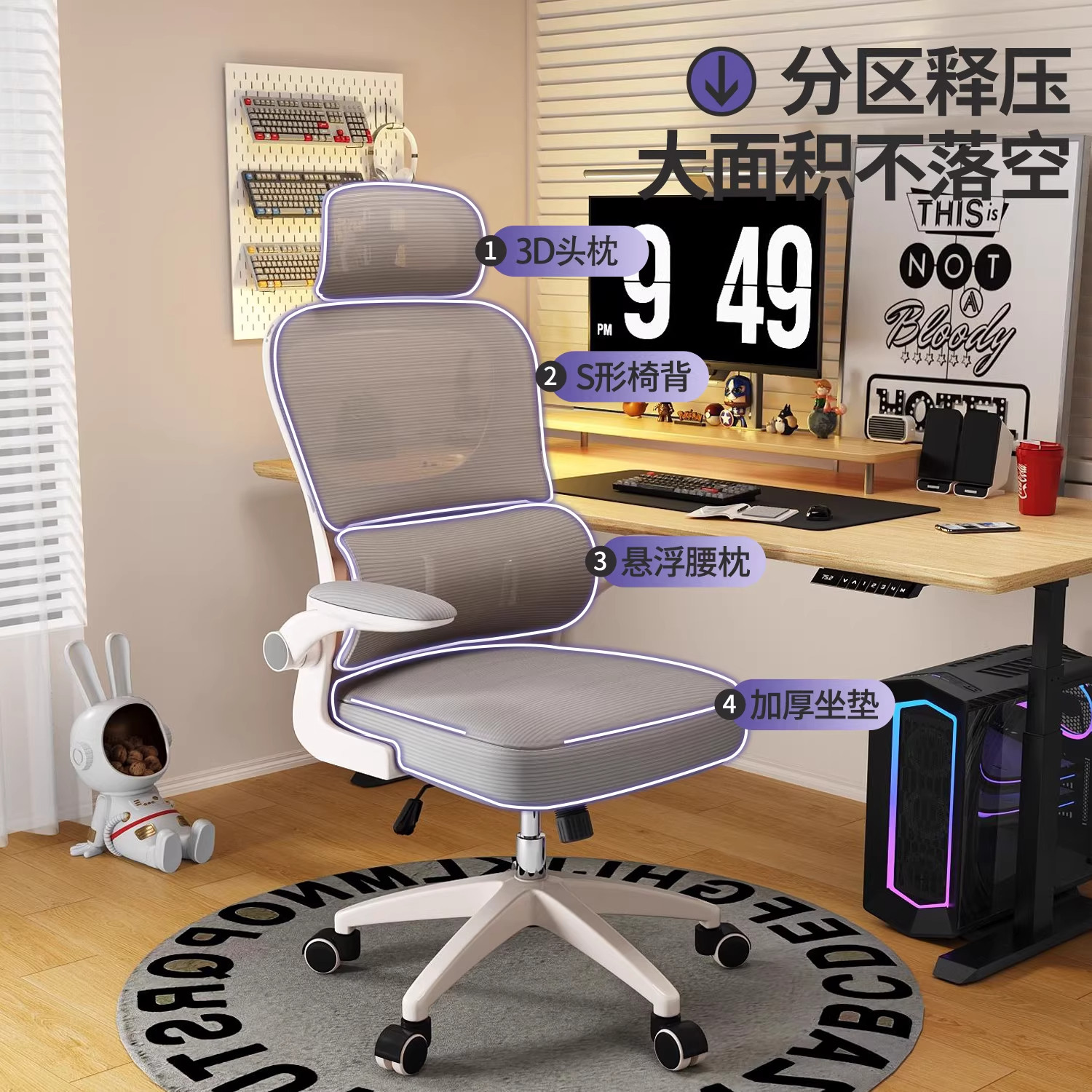 TotGuard人体工学椅电脑椅子家用办公久坐舒适撑腰座椅E1