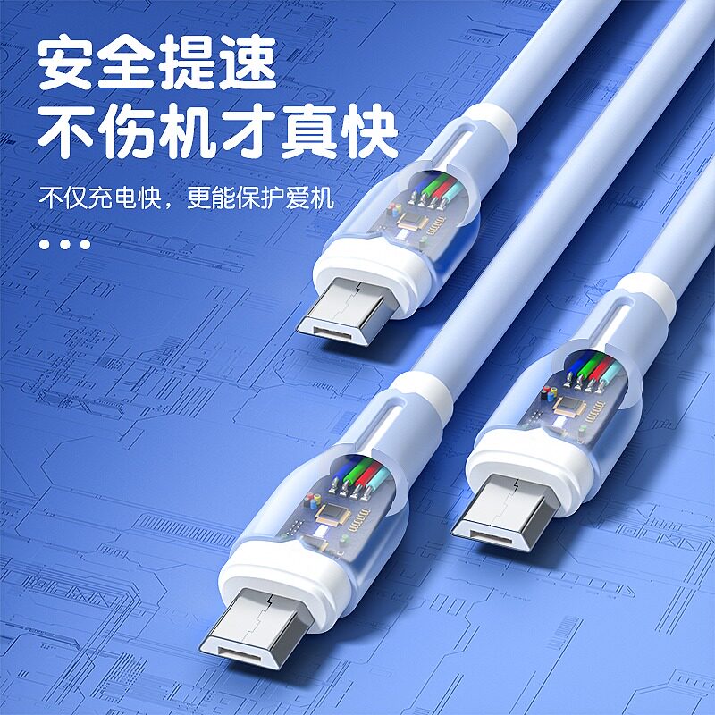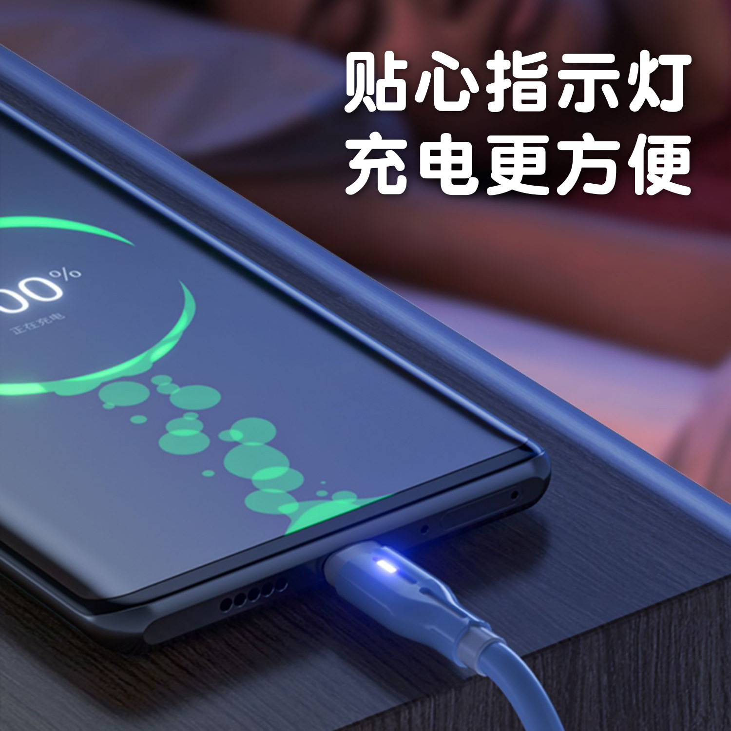 超级快充三合一数据线通用充电线适用苹果荣耀华为OPPO小米VIVO手机通用车载一拖三数据线透明芯片type-c带灯