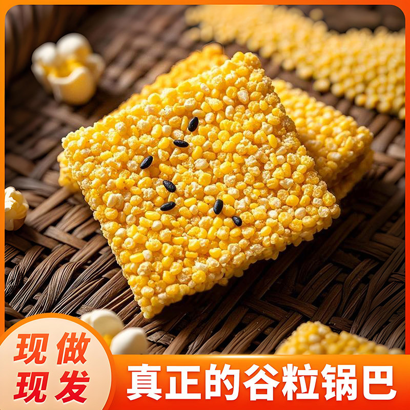 山饭子手工玉米锅巴小黄米谷物粗粮健康牛肉味解馋网红零食大包装