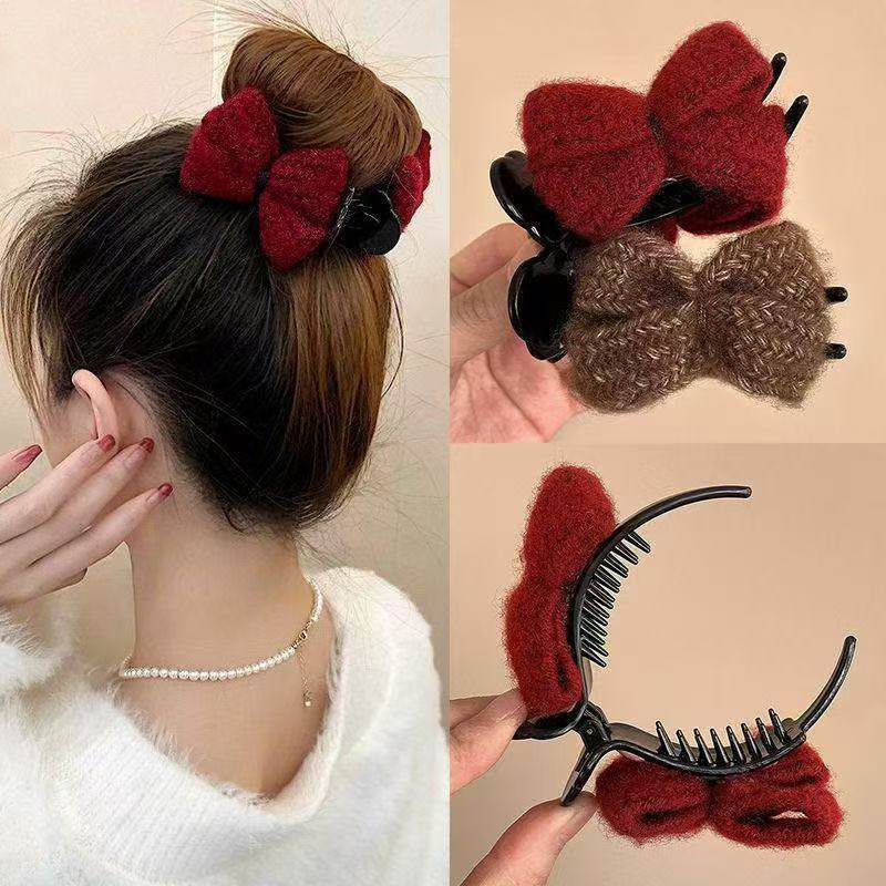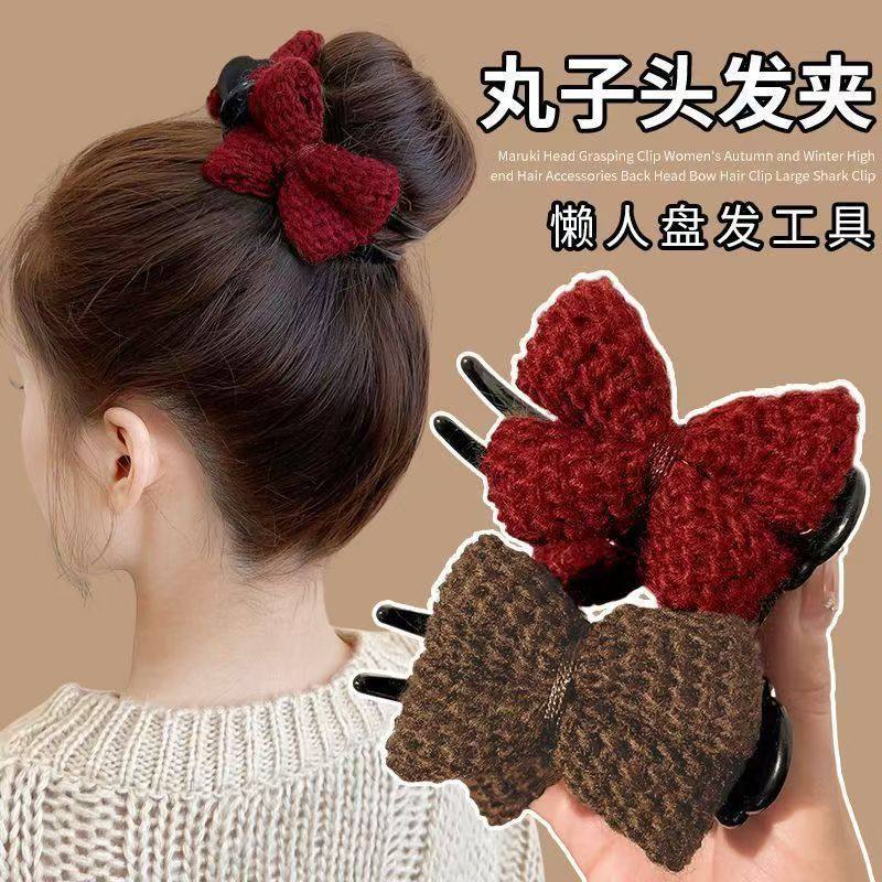 丸子头抓夹女新年2025新款红色后脑勺发夹针织马尾盘发神器头饰冬