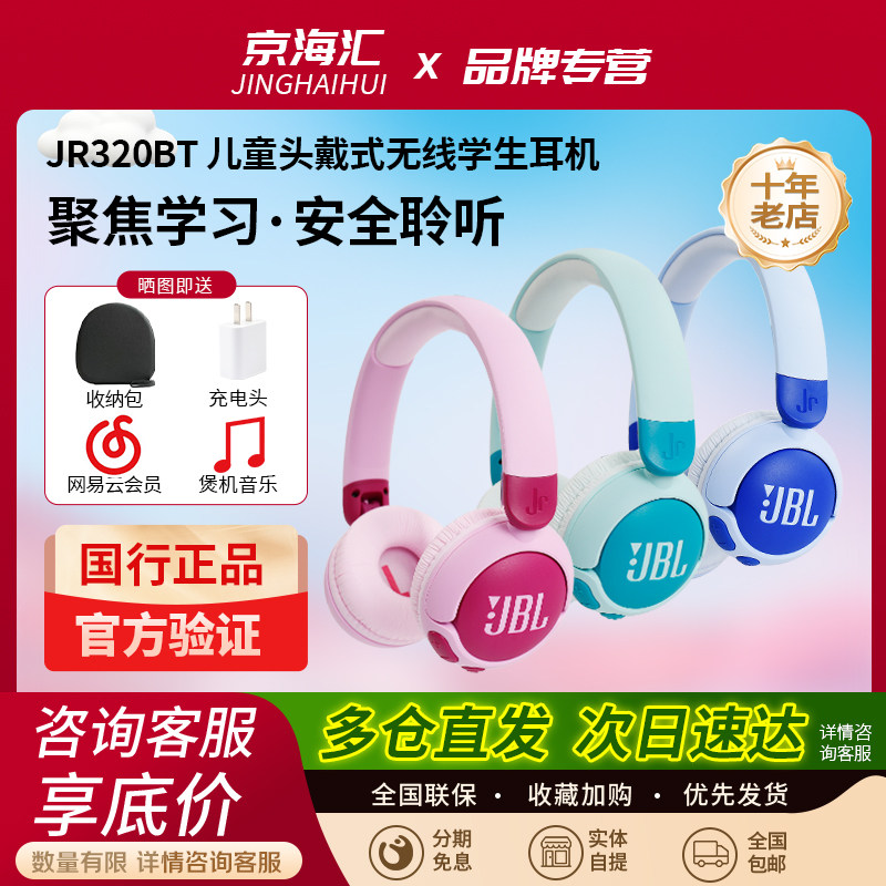 JBL JR320BT 儿童耳机头戴式无线蓝牙学生学习网课听音乐背书听力