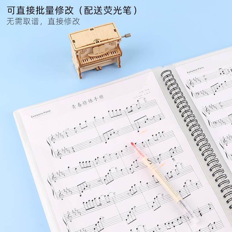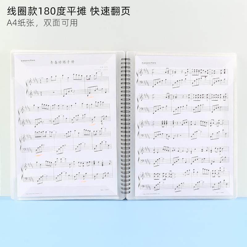 钢琴A4乐谱夹20页不反光可修改曲谱古筝琴谱文件夹线圈款定制LOGO