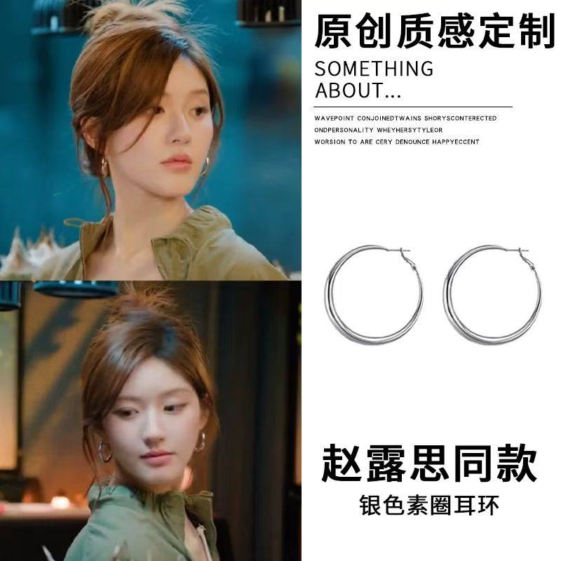 许我耀眼赵露思许妍同款素圈耳环女高级感大圆圈耳饰925银针耳圈