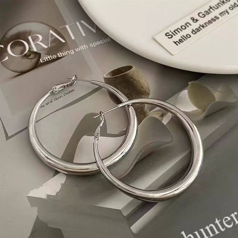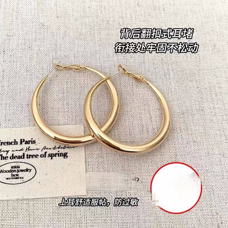 欧美法式夸张大圈圈耳环高级感耳圈银色耳饰2025新款爆款耳扣耳钉