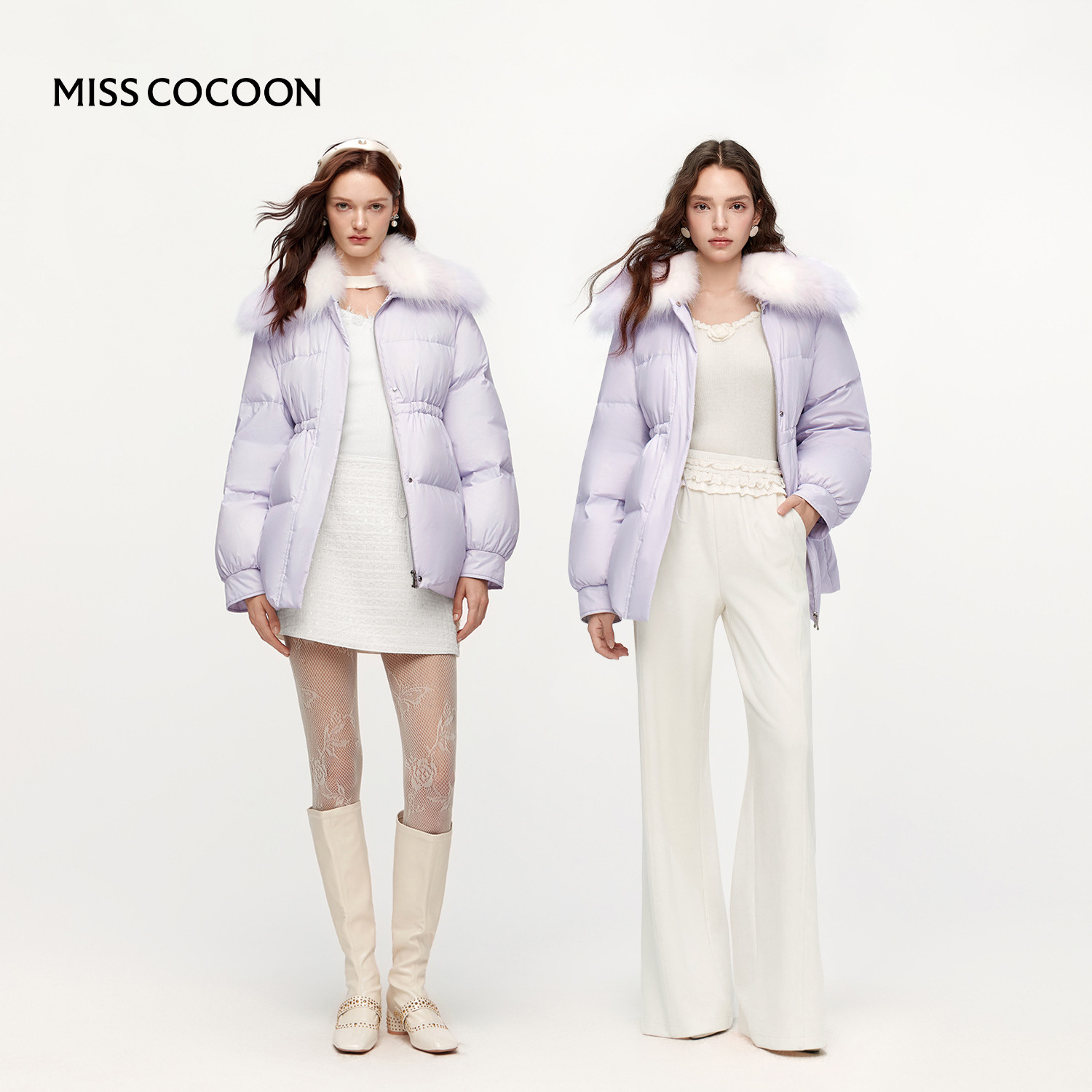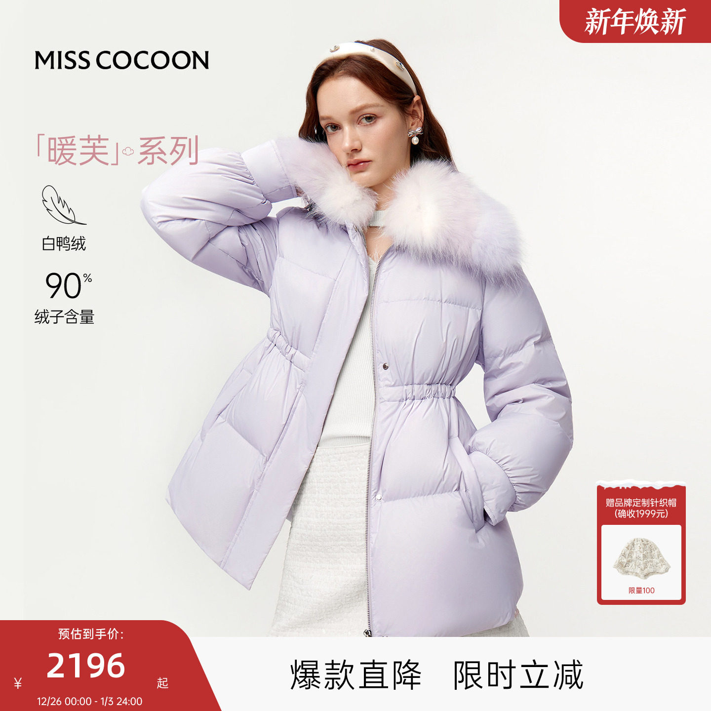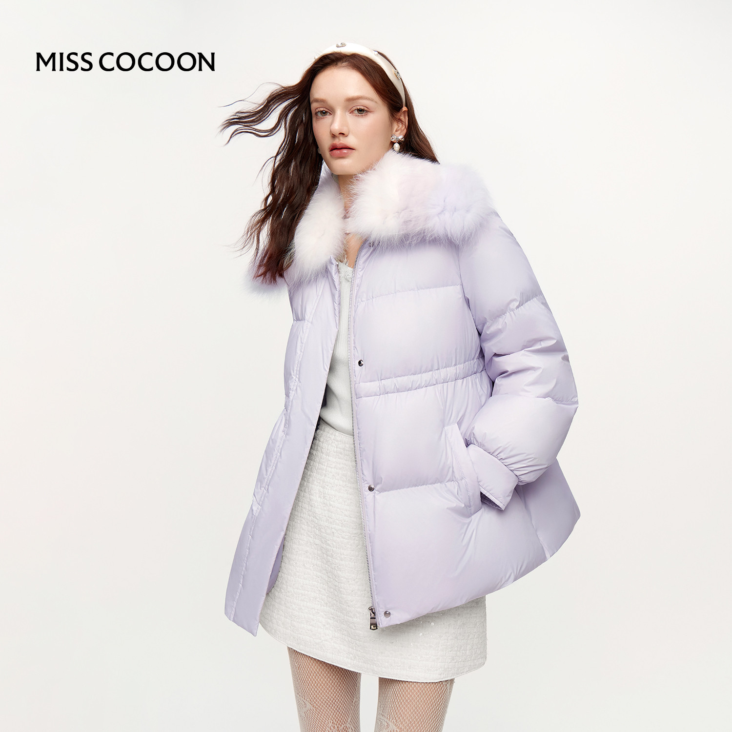 MISSCOCOON可可尼短款外套女2025冬季新款狐狸毛领90白鸭绒羽绒服